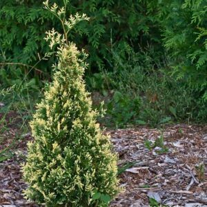 Туя западная Еллоу Даймонд (Yellow Diamond) — компактное хвойное растение, отличающееся правильной ширококонической формой и яркой золотисто-жёлтой окраской хвои, сохраняющей декоративность в течение всего года. Благодаря стабильному цвету и аккуратной геометрии он служит прекрасным цветовым акцентом для живых изгородей, смешанных композиций и солитеров в садах различных стилей, так же подходит для контейнерной посадки.