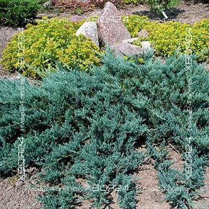 Можжевельник горизонтальный Блю Чип (Blue Chip) - один из лучших стелющихся сортов можжевельника. Его изящные стелющиеся по земле побеги со слегка приподнятыми концами равномерно расползаются в разные стороны, создавая густой ковер. Это медленнорастущий низкорослый вечнозеленый карликовый кустарник, во взрослом состоянии достигает 30 cм в высоту и 1,5 м в ширину.