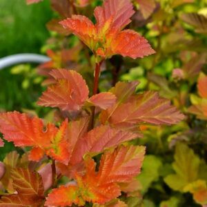 Пузыреплодник калинолистный Хамелеон - карликовый сорт c плотной округлой кроной, достигающий высоты 1 м, редко 1,5 м. Крона густая, полушаровидная, с поникающими ветвями. Годовой прирост в высоту и ширину 15-30 см. Кора на молодых побегах рыжая, эффектная в зимний период, на взрослых — серая, отслаивающаяся тонкими полосками. Летом его листва становится бордовой окраски, а осенью - тёмно-фиолетовой. Пузыреплодник сорта Хамелеон привлекает внимание садоводов в первую очередь необычным пестрым окрасом своих листков. К преимуществам данного сорта относится и неприхотливость кустарника.