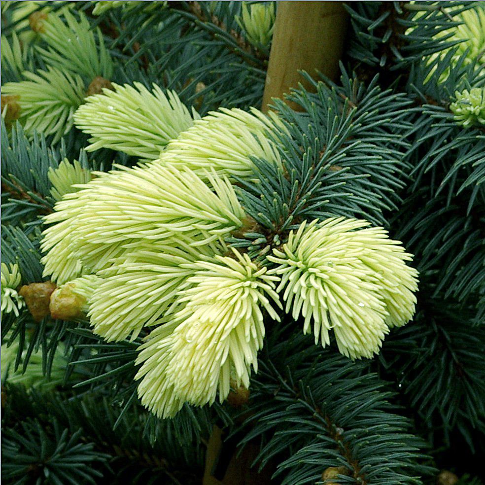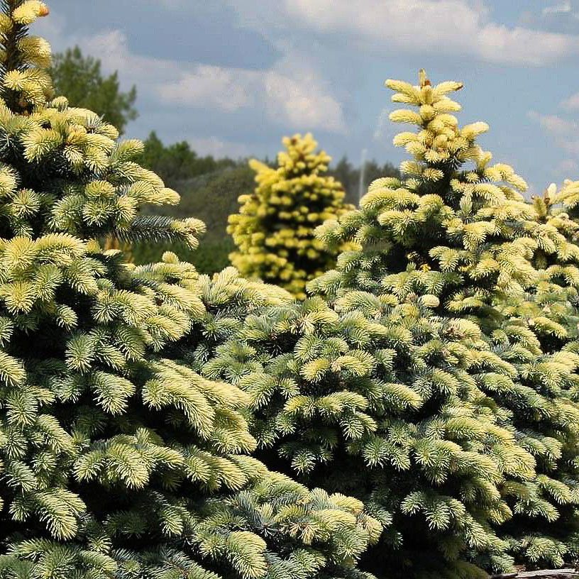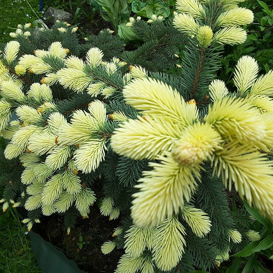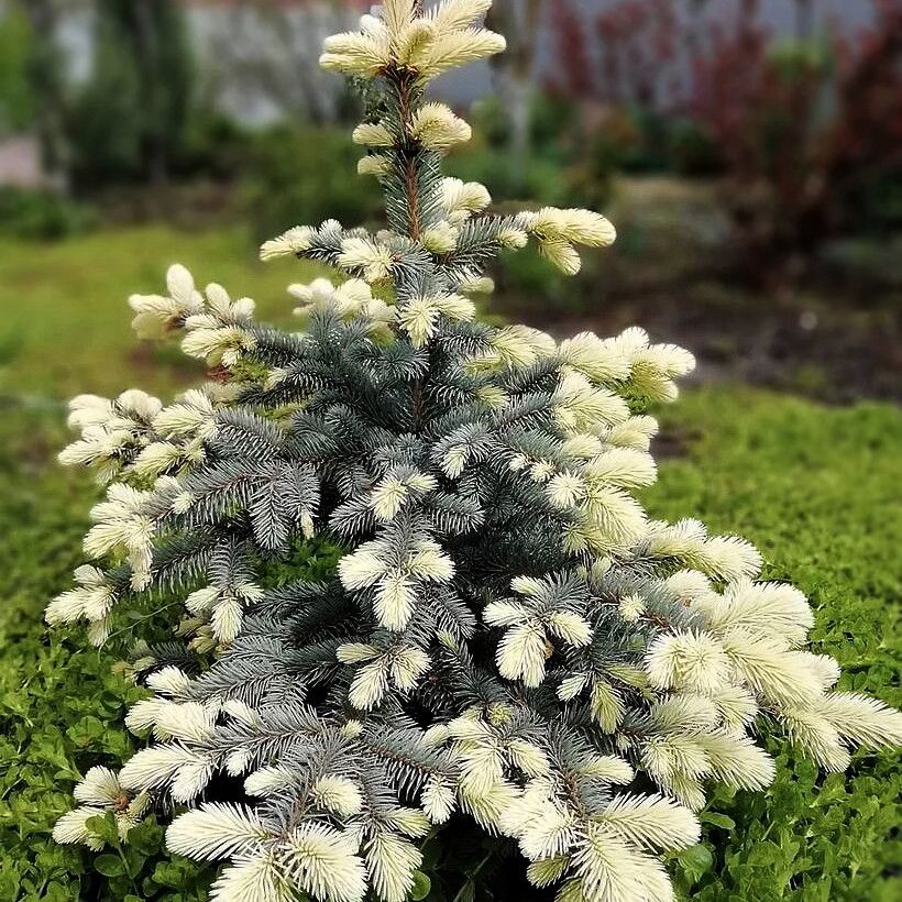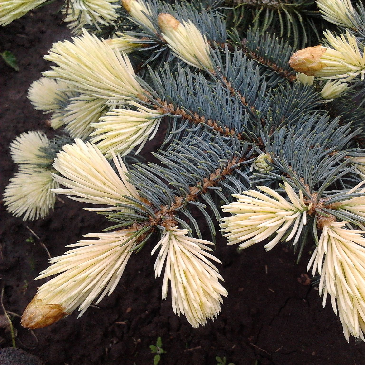 Ель колючая Белобок (Bialobok). Польский сорт ели с характерной окраской молодых побегов. В молодом возрасте полушаровидной формы, без проводника. Через несколько лет появляется проводник и принимает форму широкого конуса. Он растет медленно. В возрасте 10 лет достигает примерно 2 м в высоту. Через много лет вырастает до 3-5 м в высоту и 3 м в диаметре. Стебли короткие, жесткие, расположены горизонтально. Хвоя толстая, до 3 см длиной, жесткая, очень колючая, расположена на побегах радиально, с обеих сторон серебристо-голубая. Молодые приросты интенсивно кремово-желтые. Цвет прироста держит 1,5 месяца, после приобретая синеватую окраску. Шишки не завязывает. Ель «Белобок» считается зимостойким и светолюбивым растением. В тени она может потерять свою уникальную окраску. Несмотря на медленный рост (около 10-12 см в год), взрослые деревья в возрасте 10 лет и старше могут достигать высоты до 5 метров и диаметра до 3 метров.