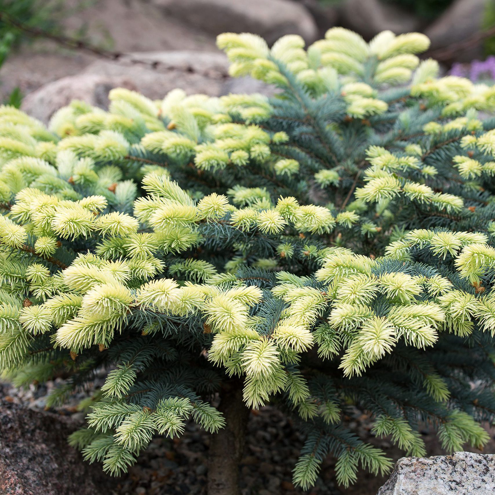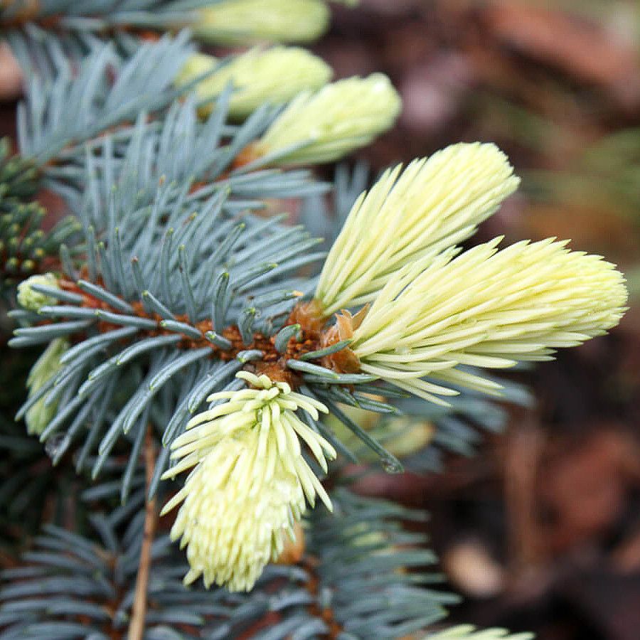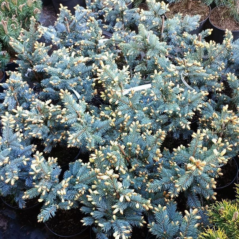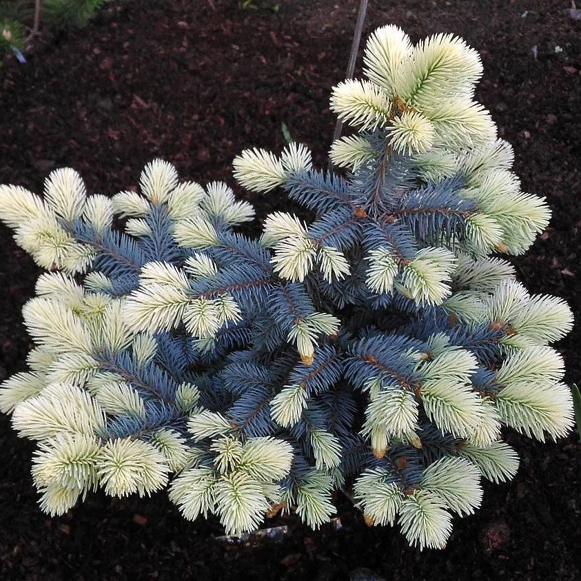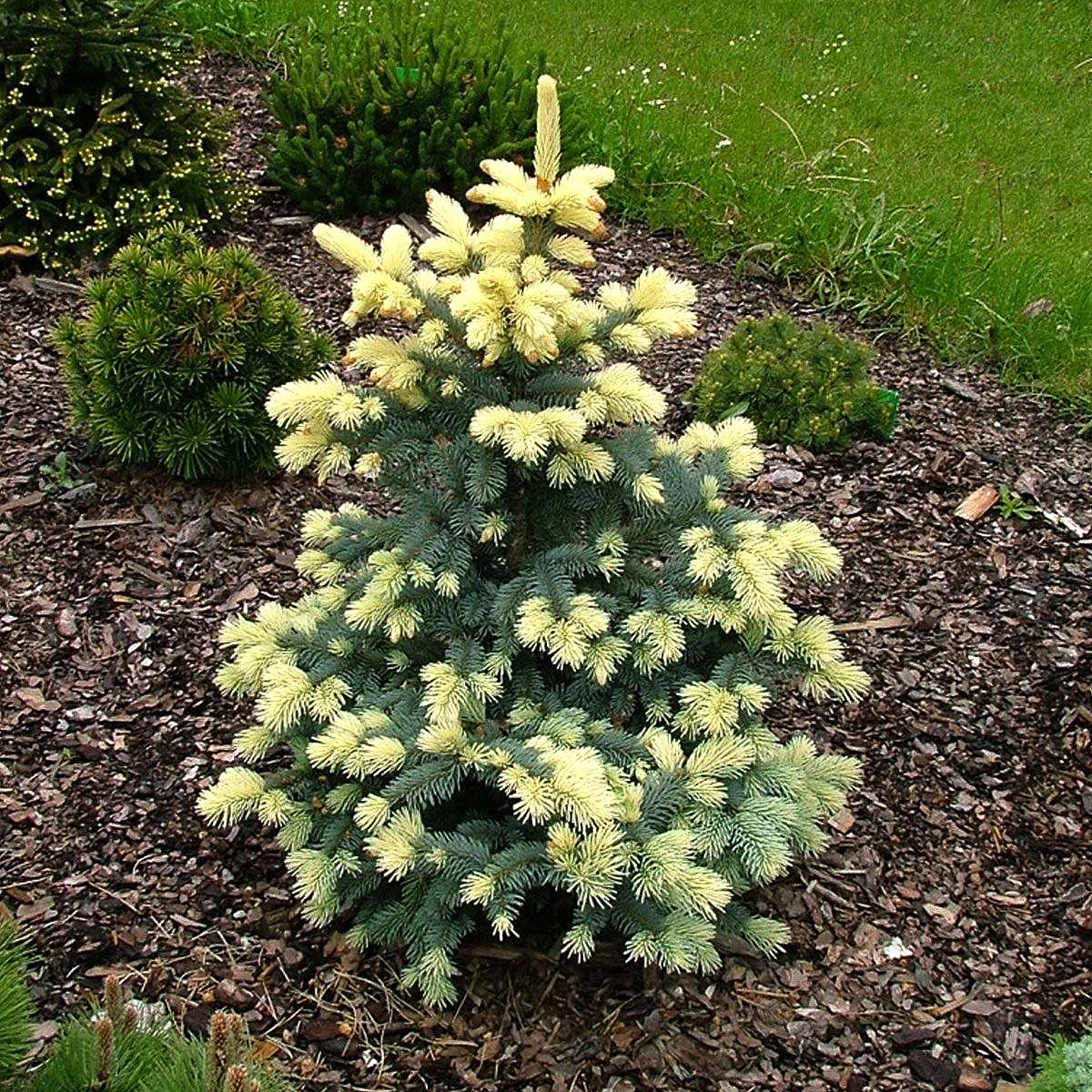 Посадочная яма делается из расчета две высоты и две ширины корневого кома, приобретенного растения. Если почва глинистая, то на глубину ямы необходимо поместить 10-20 см дренажа, например: гравий, керамзит, битый кирпич, щебень. Яму желательно наполнить специальным грунтом для хвойных растений или почвосмесью из расчета 2:1:1 (две части земли, одна части торфа и одна часть песка). При посадке в яму можно добавить корневин или любой другой стимулятор корнеобразования, а так же ОМУ (органическое минеральное удобрение) для хвойных растений. Целостность корневого кома без необходимости не нарушать. Расположить саженец необходимо таким образом, чтобы корневая шейка растения не была заглублена. После посадки саженец хорошо поливают и мульчируют корой, щепой, хвойным опадом или опилками. Если в приготовленную почвосмесь не добавлялось ОМУ для хвойных растений, то под мульчу можно заделать в грунт любое минеральное удобрение для хвойный растений. Все ели привитые на штамб необходимо закрепить на опору чтобы помочь растению противостоять снеговым и ветровым нагрузкам.