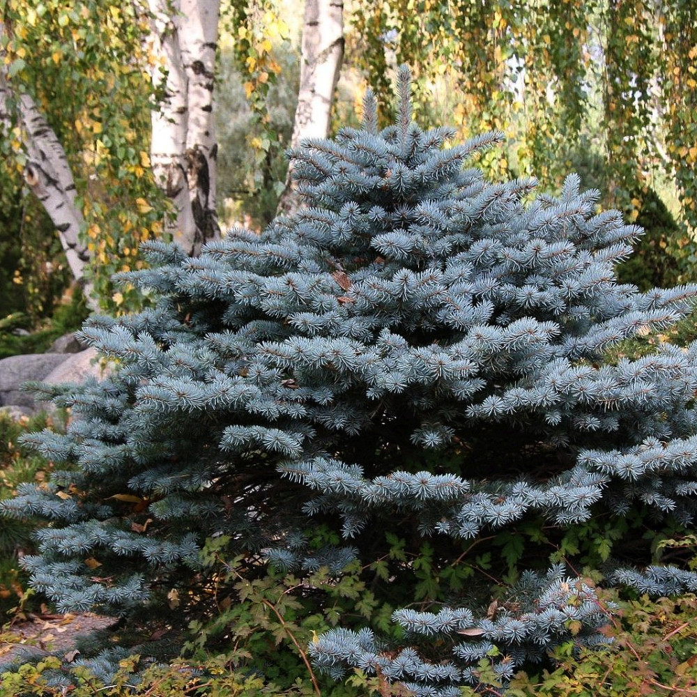 Ярко-голубая хвоя. Плотная крона.