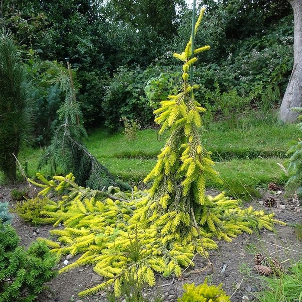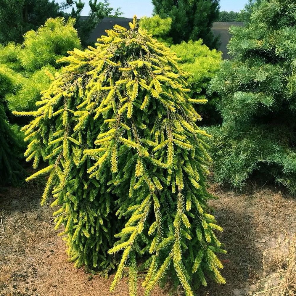 Ель Голд Дрифт (Золотой Дрейф, Golddrift, Gold Drift) является одним из самых ярких, неординарных плакучих сортов. Это изумительной красоты хвойное растение действительно выглядит как золотое дерево. Необычный желтый окрас, а также довольно оригинальная крона с элементами плакучести всегда привлекает внимание, украшая территорию и превращая дерево в яркого солиста.