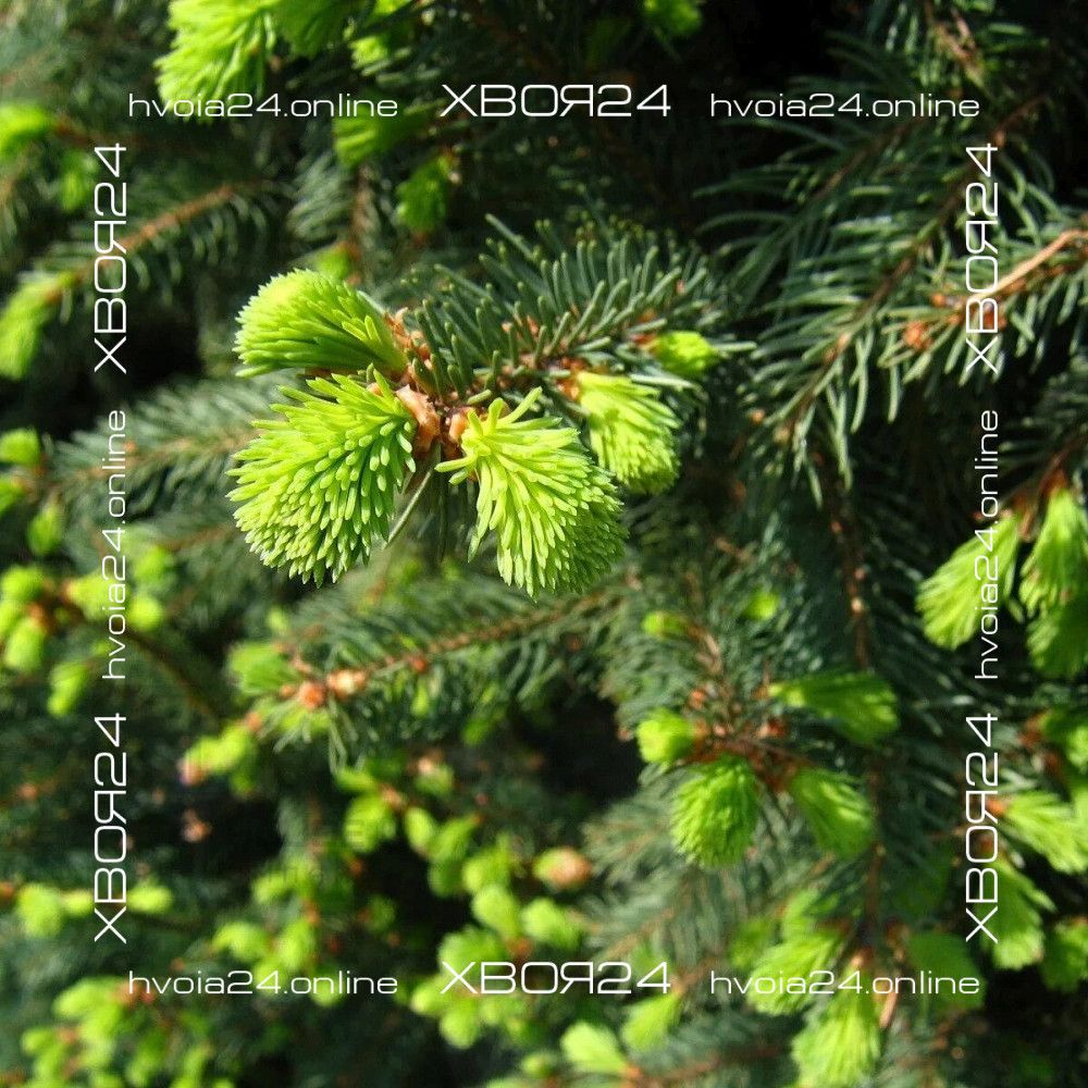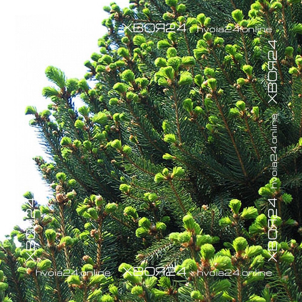 Хвоя короткая, ее длина не превышает 2,5 см, а еще она жесткая и колючая. Хвоинки окрашены в равномерный и насыщенный зеленый цвет. Молодой прирост всегда имеет светло-зеленый оттенок.