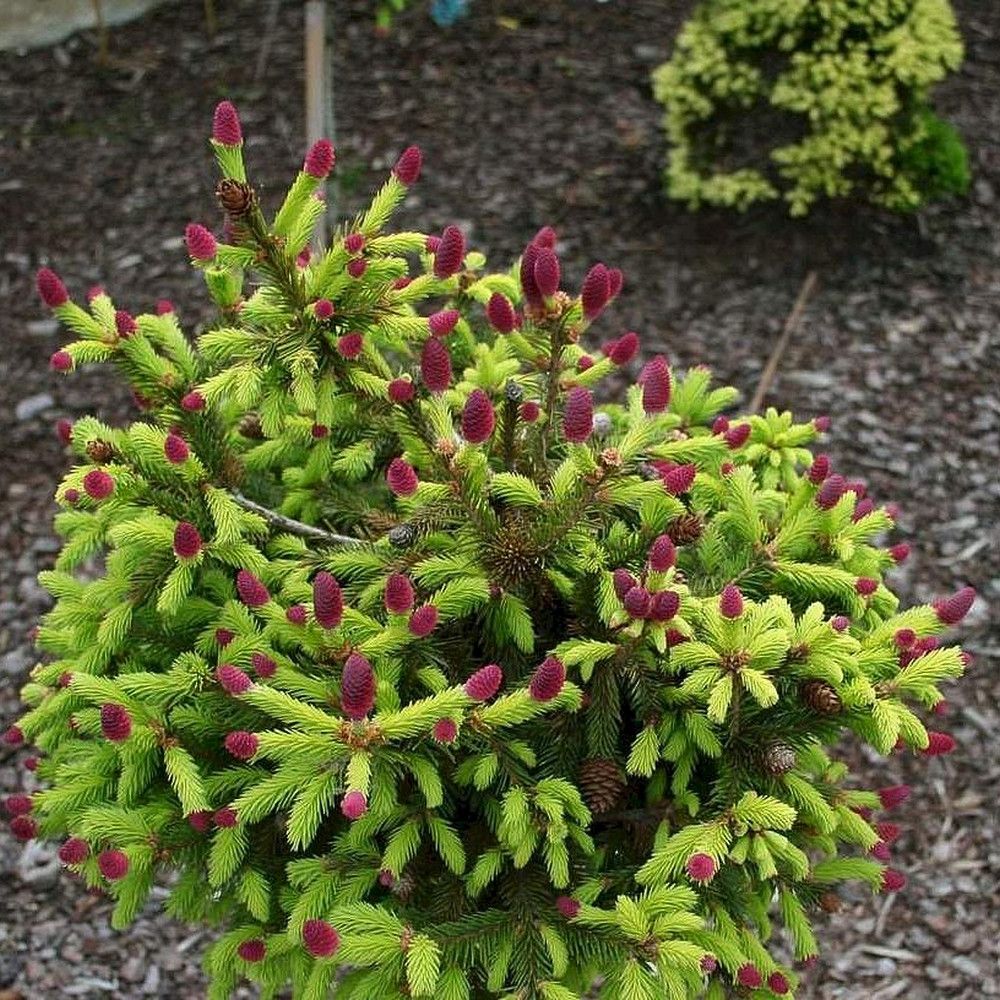Молодые побеги имеют светло-зеленый, салатовый оттенок, который контрастирует со взрослыми. К 7-9 годам ель приобретает характерную форму неправильной сферы или полусферы с нечеткими границами. Крона развивается асимметрично, что придает дереву уникальный и причудливый вид.