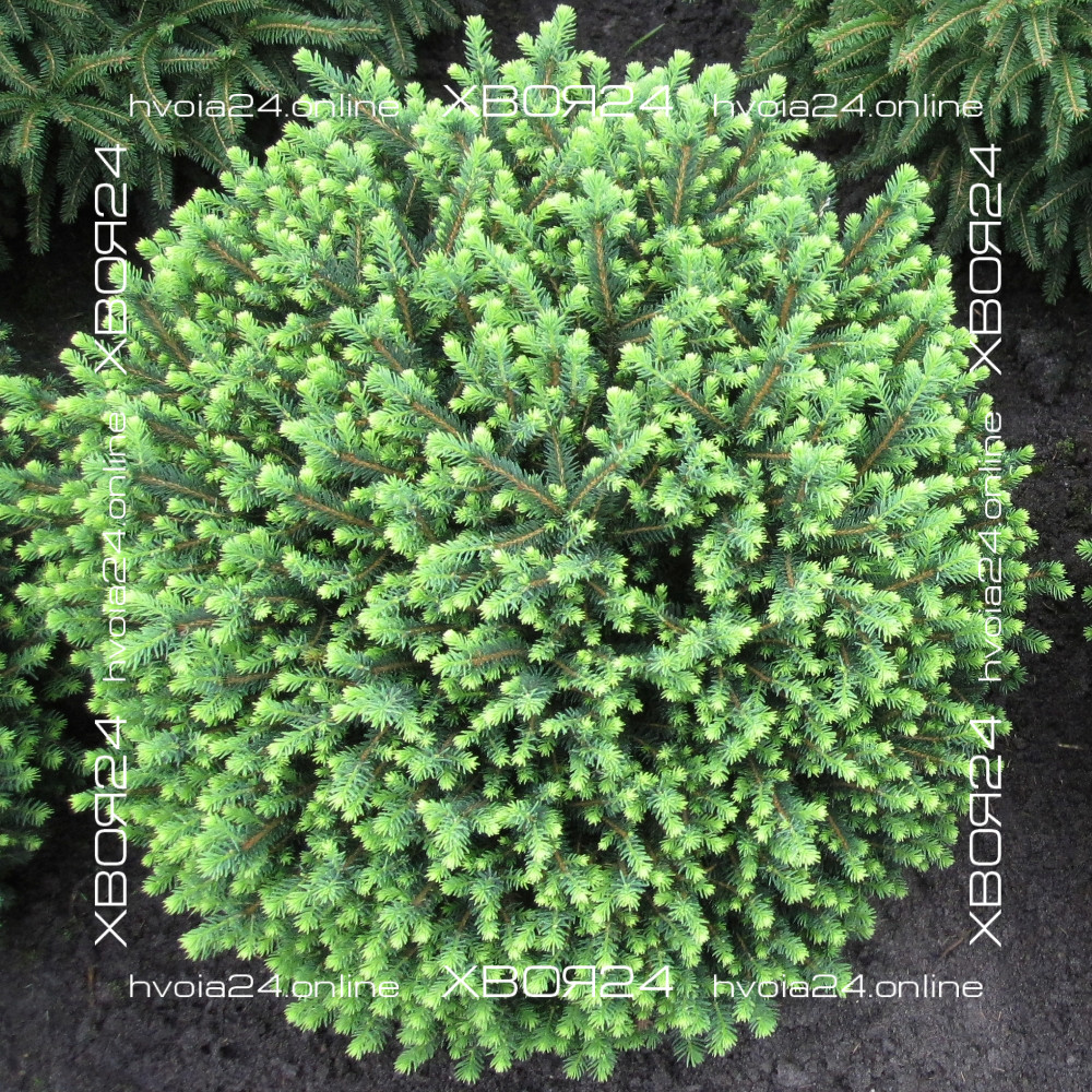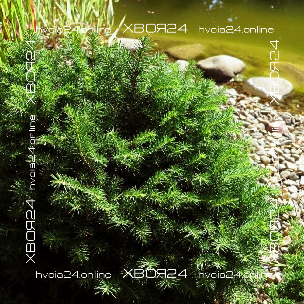 - Это компактная ёлочка, имеющая небольшую высоту (до 80 см), с густой объёмной кроной, диаметром больше 1 метра. Именно так выглядит взрослое дерево, в отличие от молодых растений, у которых веточки торчат в разные стороны. По мере роста они обрастают побегами, и зелёная масса становится густой и плотной. В результате надземная часть начинает напоминать пышную полусферу.