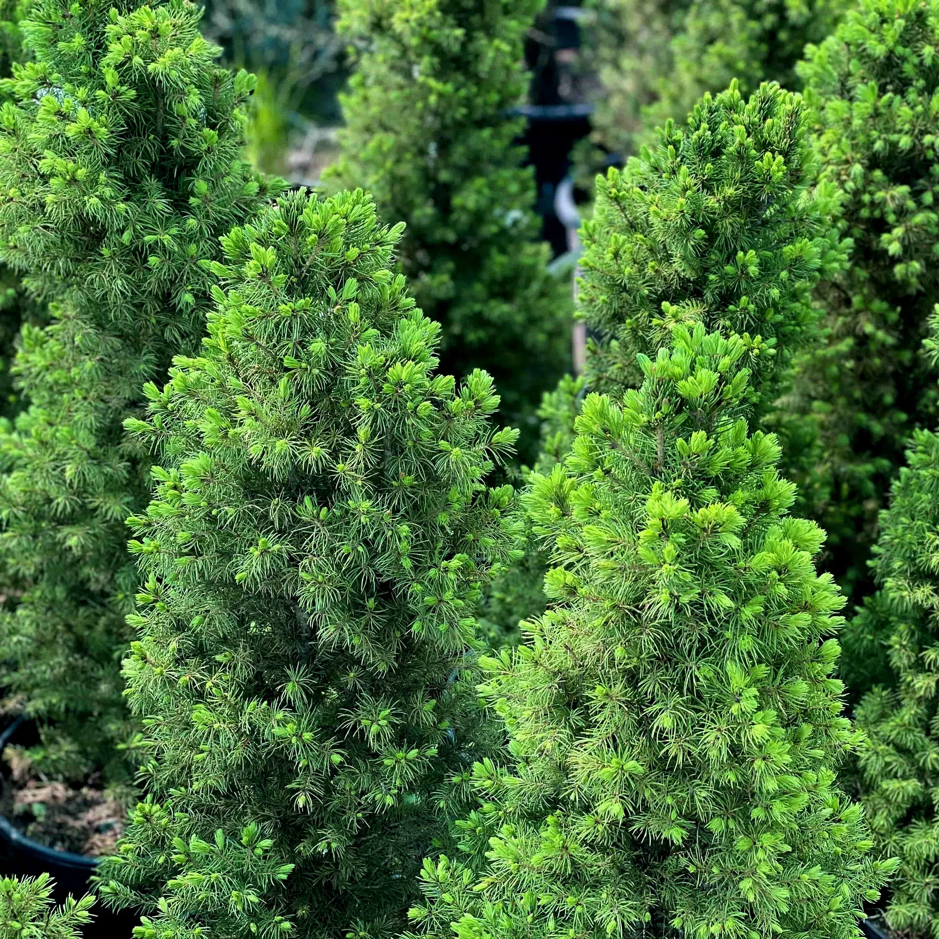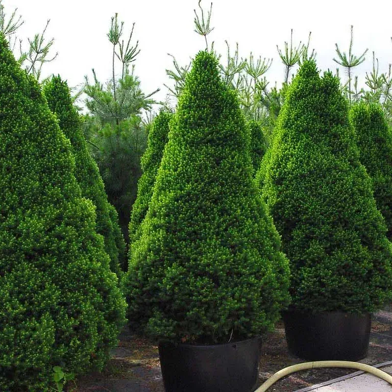 Коника Десембер — компактное и эстетически привлекательное дерево с выразительными декоративными формами. У этой ели тонкие и гибкие ветви, образующие правильную конусовидную крону с заостренной верхушкой. Почки имеют коричневатый оттенок и лишены смолистого запаха, а корневая система расположена поверхностно. Хвоя мягкая и игольчатая, с неярко выраженным ароматом смородины. Иголки изогнутой формы, длиной от 1 до 1,8 см, изначально светло-зеленые, но со временем приобретают сизоватый оттенок. На дереве изредка появляются небольшие светло-коричневые шишки, в основном сосредоточенные в верхней части кроны. Ежегодный прирост составляет от 8 до 15 см, а средняя высота взрослого дерева достигает 4-5 метров при диаметре около 2 метров. Через 10 лет, в зависимости от условий выращивания, Ель канадская Коника Десембер достигает высоты от 2 до 5 метров.