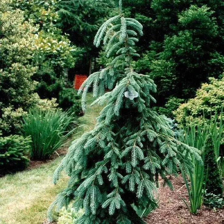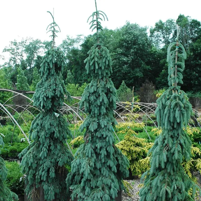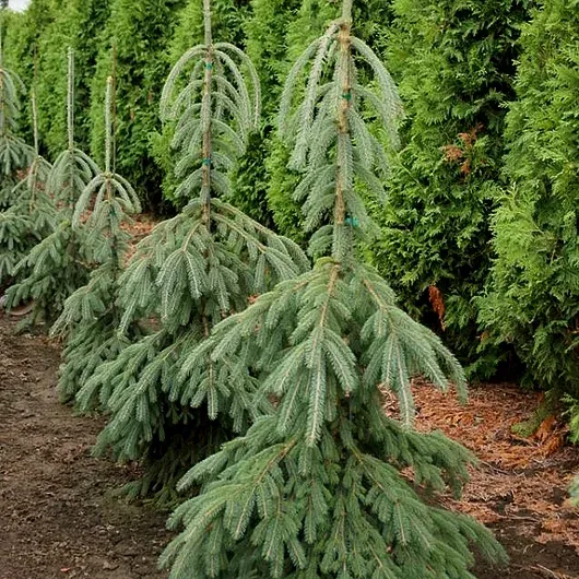 Канадская ель Пендула имеет необычную форму кроны с плакучими ветвями и хвоей голубовато-сизого цвета. Растет довольно быстро, достигая 30 см в год. Средняя высота растения составляет 3-5 метров, а к 10 годам достигает 1,5-3 метров.