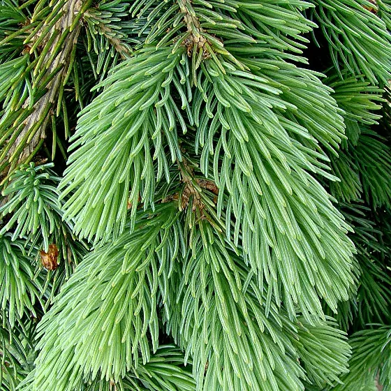 Хвоя имеет серо-голубовато-зеленый оттенок, который с возрастом становится более серым и приобретает белый восковой налет.