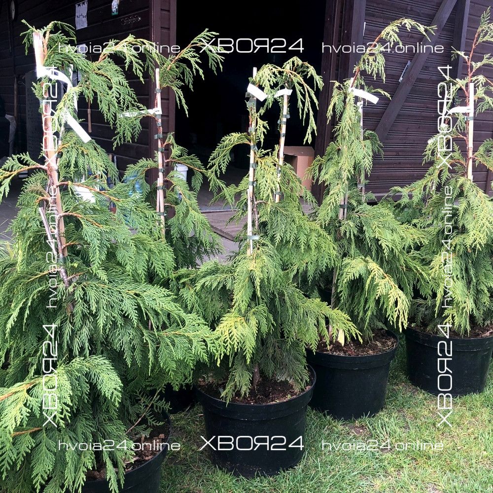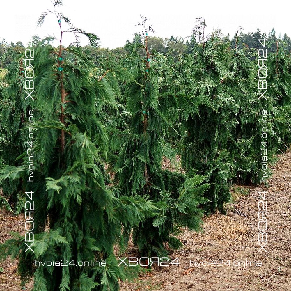 После посадки саженец хорошо поливают и мульчируют корой, щепой, хвойным опадом или опилками. Если в почвосмесь не добавляли ОМУ, то под мульчу можно заделать в грунт любое минеральное удобрение для хвойный растений. Все кипарисовики, привитые на штамб, необходимо закрепить на опору, чтобы помочь растению противостоять снегу и ветру.