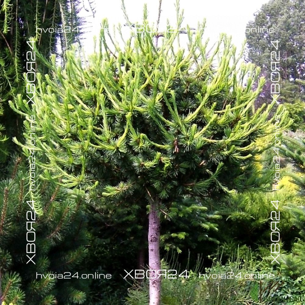 Лиственница Корник (Kornik) – разновидность европейской лиственницы – это карликовое дерево, которое вырастает до 1,5 метров в высоту и 1 метра в диаметре. Его шаровидная крона состоит из коротких и густых побегов, покрытых мягкой хвоей. Иголки очень короткие, всего 3 сантиметра длиной. Летом они ярко-зеленые, а к осени меняют цвет на благородный золотистый. Зимой вся хвоя опадает.