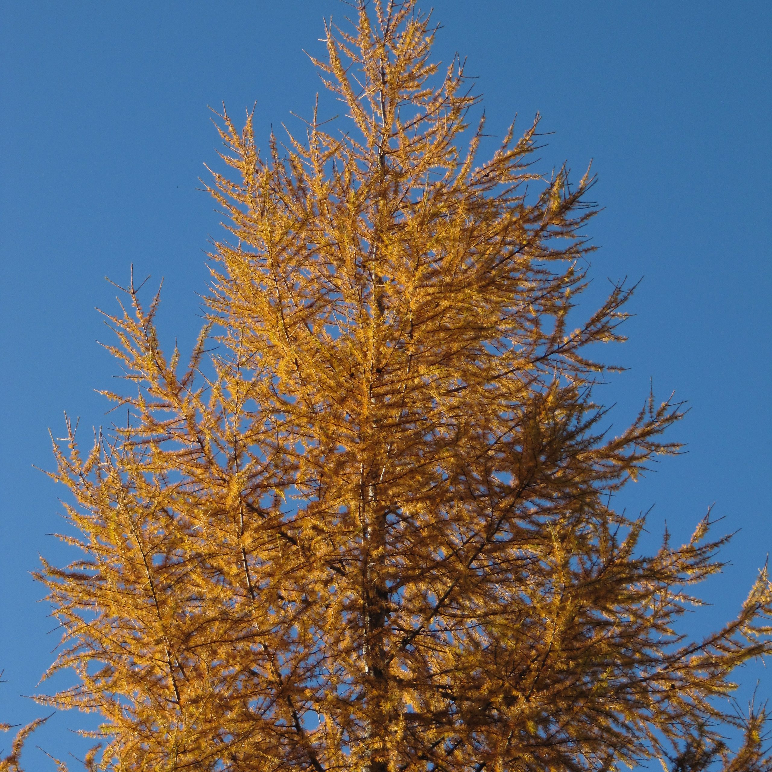 Хвоя лиственницы ярко-зелёная, плоская и мягкая. Она собрана в аккуратные пучки по 30–40 штук на коротких побегах. Осенью хвоя становится золотисто-жёлтой и опадает. Зимой дерево можно узнать по узловатым ветвям.
