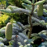Пихта благородная Глаука – очень живописная долгоживущая пихта с голубой хвоей. Растёт медленно, к 10-ти годам высота 3-4 м. Взрослое дерево высотой 15-18 м и диаметром кроны 4-6 м. Ствол абсолютно прямой, ровный. Скелетные побеги далеко отстают друг от друга, разрастаются почти равномерно, умеренно ветвятся, отходят от ствола под прямым углом и направлены горизонтально в стороны. Формируется симметричная, коническая крона. Хвоя короткая, толстая, очень густая, серо-голубого цвета, длиной 2,5-3,5 см. Молодой прирост светлый, пепельно-голубой, красиво выделяется на фоне старой хвои. Шишки очень большие, длиной до 25 см, могут быть уже на молодых растениях. Предпочитает солнечное или полутенистое место посадки. Зимостойкость хорошая (до -35).