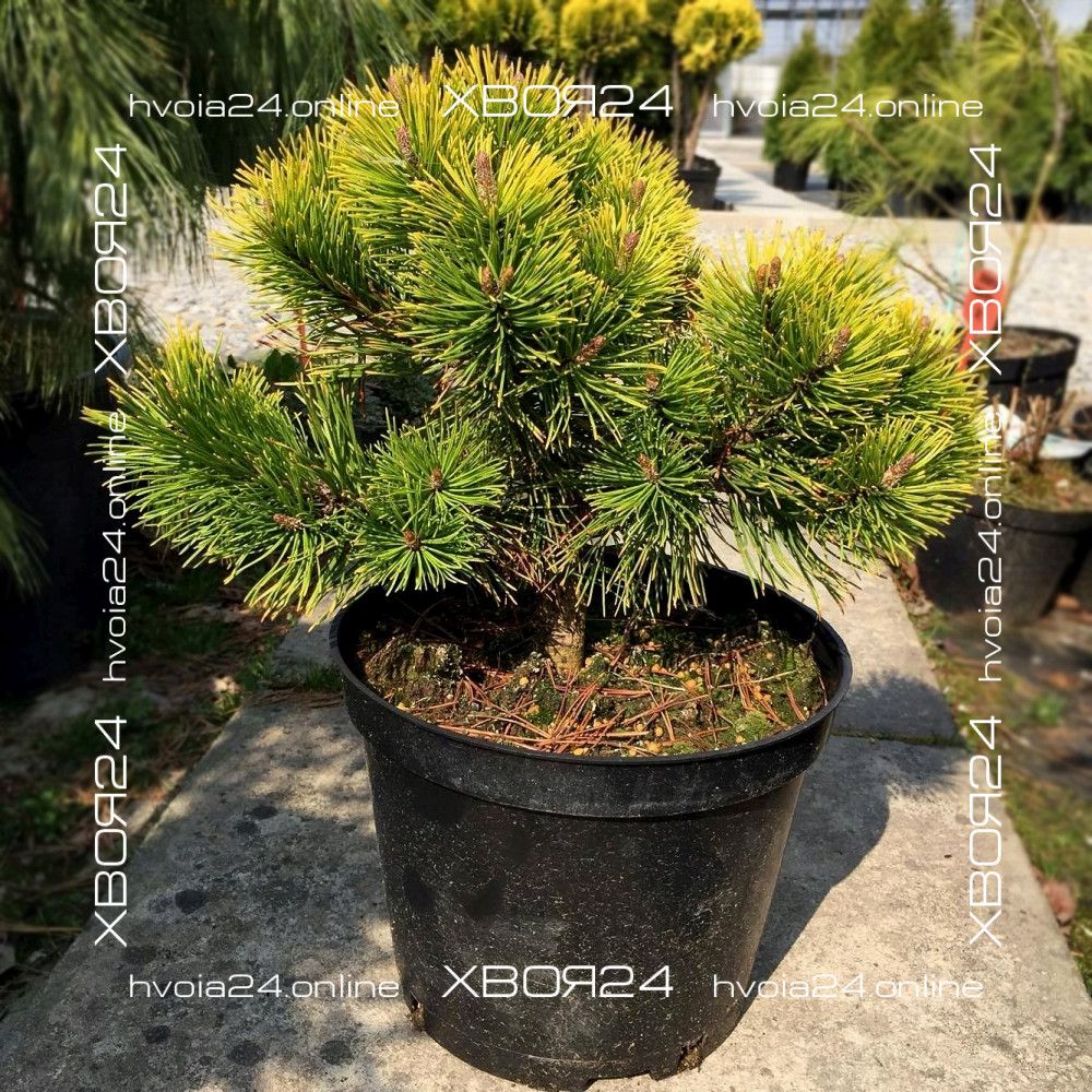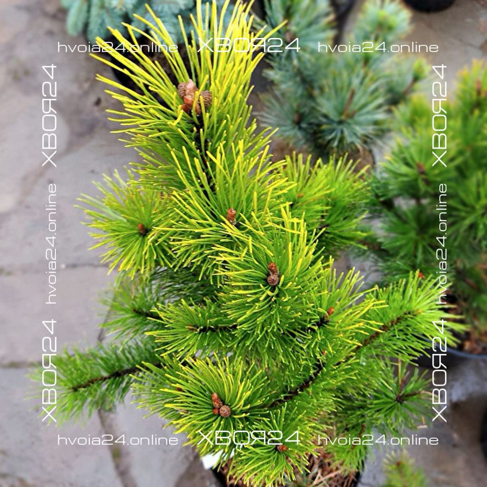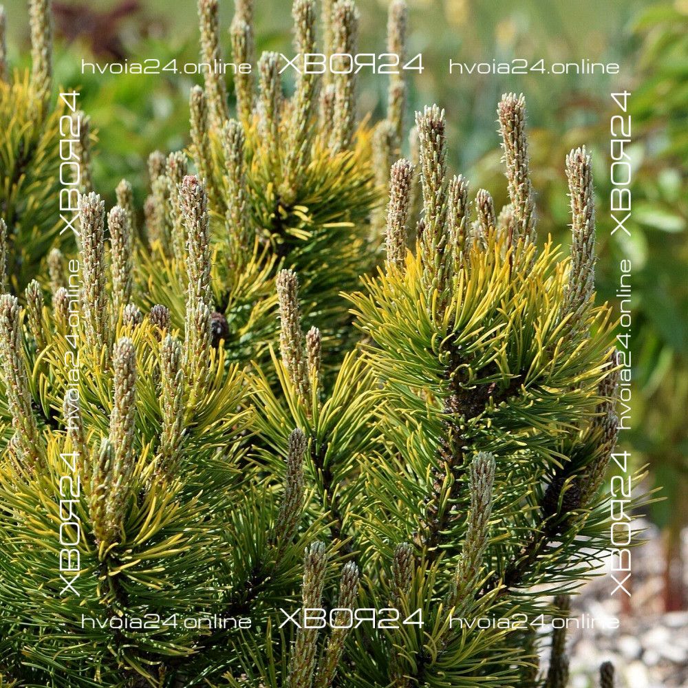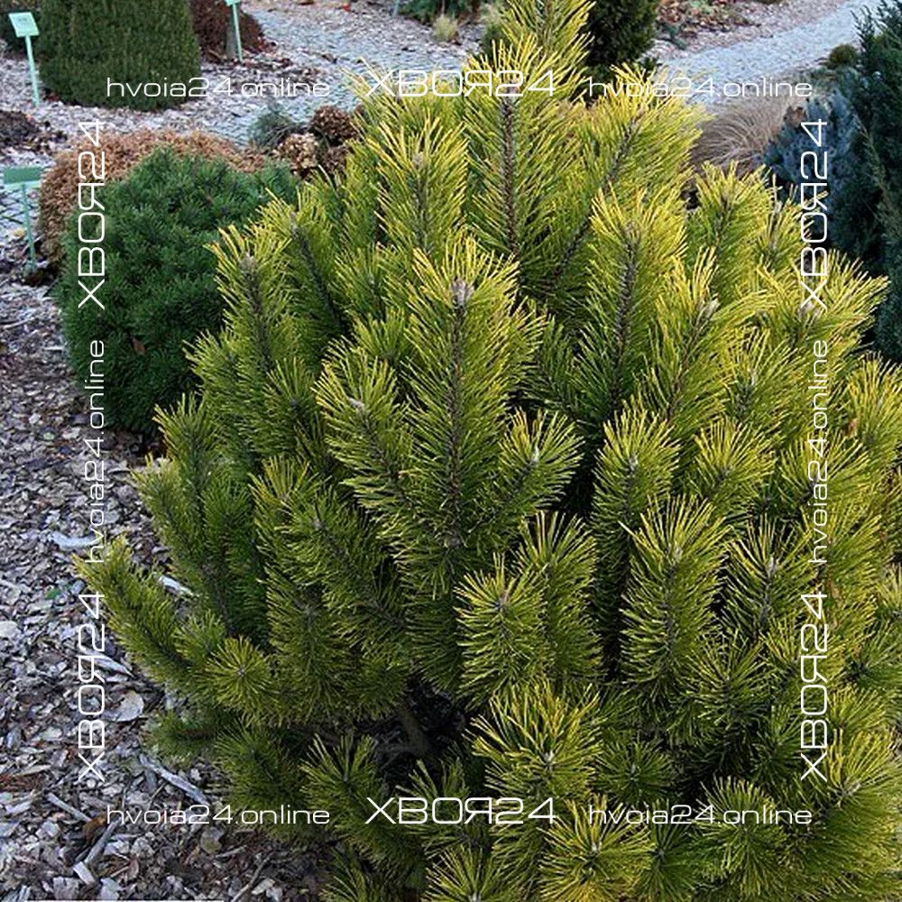 Сосна горная Голден Глоу (Golden Glow). Название этой сосны в переводе с английского означает «Золотое сияние». Необычное растение, хвоя которого приобретает желтый цвет с осени по весну. Как и все горные сосны, хорошо разрастается в ширину. Корни сосны не мешают другим растениям, поэтому в саду можно компоновать с чем угодно. Для усиления густоты куста и сдерживания роста в высоту можно прищипывать молодые побеги весной.