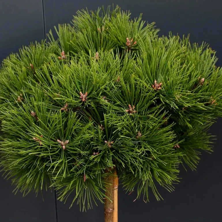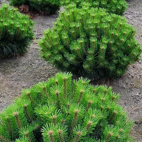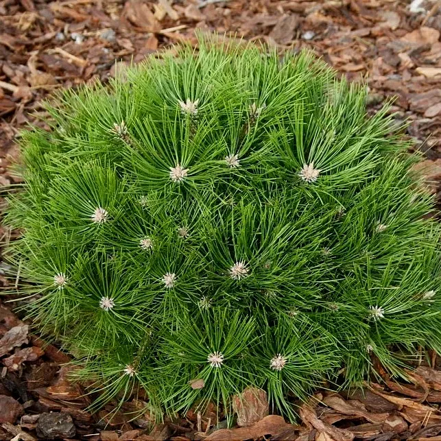 Посадочная яма делается из расчета две высоты и две ширины корневого кома, приобретенного растения. Если почва глинистая, то на глубину ямы необходимо поместить 10-20 см дренажа, например: гравий, керамзит, битый кирпич, щебень. Яму желательно наполнить специальным грунтом для хвойных растений или почвосмесью из расчета 1:2:2 (одна часть земли, две части торфа и две части песка). При посадке в яму можно добавить корневин или любой другой стимулятор корнеобразования, а так же ОМУ (органическое минеральное удобрение) для хвойных растений. Целостность корневого кома без необходимости не нарушать. Расположить саженец необходимо таким образом, чтобы корневая шейка растения не была заглублена. После посадки саженец хорошо поливают и мульчируют корой, щепой, хвойным опадом или опилками. Если в приготовленную почвосмесь не добавлялось ОМУ для хвойных растений, то под мульчу можно заделать в грунт любое минеральное удобрение для хвойный. Все карликовые сорта удобряются из расчета 30% от нормы указанной производителем. Сосны привитые на штамб необходимо закрепить на опору чтобы помочь растению противостоять снеговым и ветровым нагрузкам.