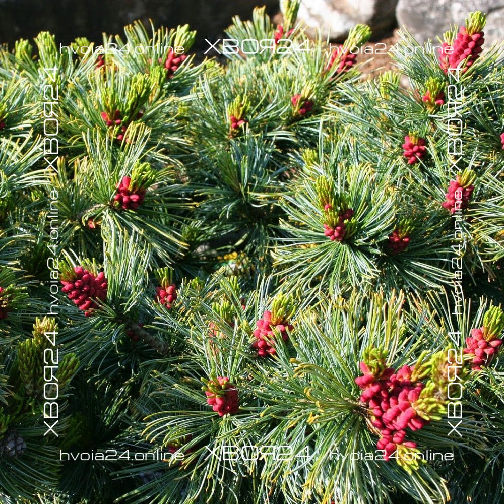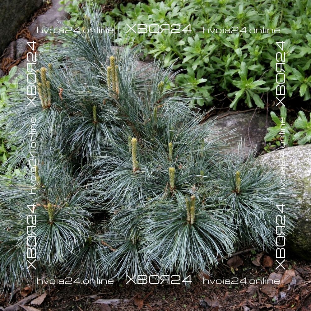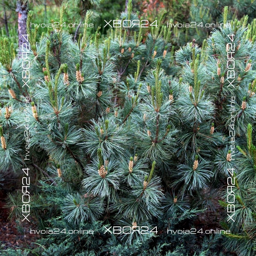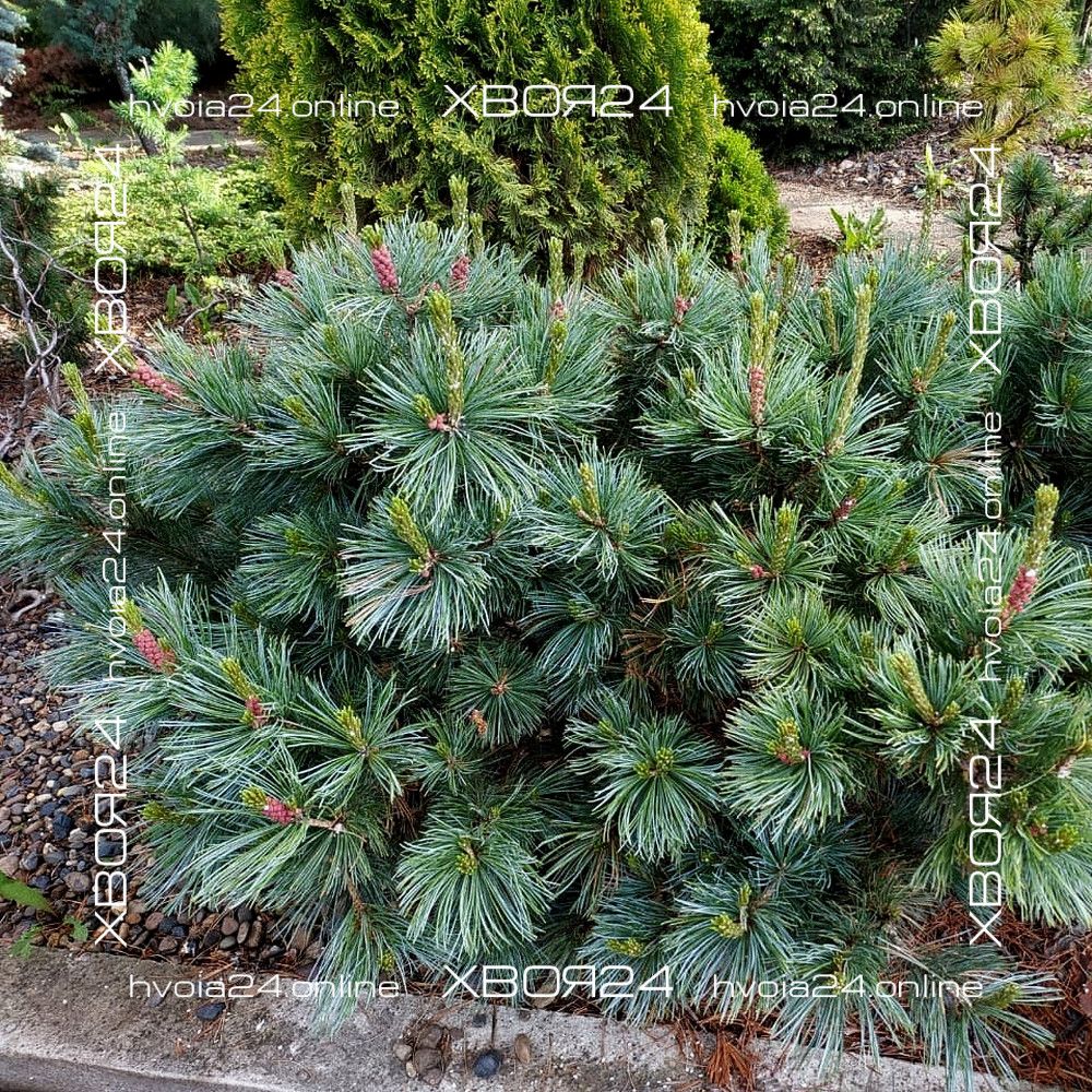 Посадочная яма делается из расчета две высоты и две ширины корневого кома, приобретенного растения. Если почва глинистая, то на глубину ямы необходимо поместить 10-20 см дренажа, например: гравий, керамзит, битый кирпич, щебень. Яму желательно наполнить специальным грунтом для хвойных растений или почвосмесью из расчета 1:2:2 (одна часть земли, две части торфа и две части песка). При посадке в яму можно добавить корневин или любой другой стимулятор корнеобразования, а так же ОМУ (органическое минеральное удобрение) для хвойных растений. Целостность корневого кома без необходимости не нарушать. Расположить саженец необходимо таким образом, чтобы корневая шейка растения не была заглублена. После посадки саженец хорошо поливают и мульчируют корой, щепой, хвойным опадом или опилками. Если в приготовленную почвосмесь не добавлялось ОМУ для хвойных растений, то под мульчу можно заделать в грунт любое минеральное удобрение для хвойный растений. Все карликовые сорта удобряются из расчета 30% от нормы указанной производителем. Сосны привитые на штамб необходимо закрепить на опору чтобы помочь растению противостоять снеговым и ветровым нагрузкам.
