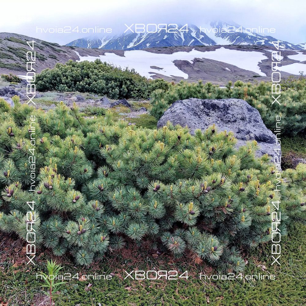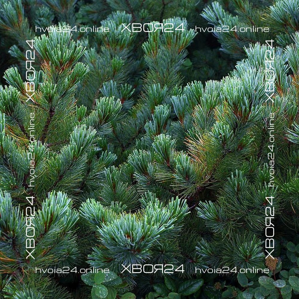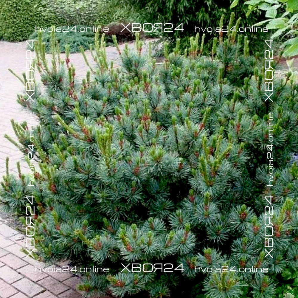 Кедровый стланик Глаука (Glauca) – селекционная форма. Кустарник высотой 1 – 1,5 м, редко до 3 м. Диаметр кроны около 3 м. Побеги мощные, изогнутые и приподнимающиеся. Хвоя серо-голубая, более интенсивно окрашена, чем у типа. Растет медленно, годичный прирост до 10 см. Основная прелесть этой формы — в густом опушении веток пяти-хвойными пучками длинных (до 8 см) острых изогнутых хвоинок серебристо-голубого цвета, которые не опадают три-четыре года. Молодые красно-фиолетовые шишки — дополнительный декор этой роскошной сосны; к периоду созревания яйцевидные, до 5 см длиной шишки становятся блестящими, светло-бурыми.
