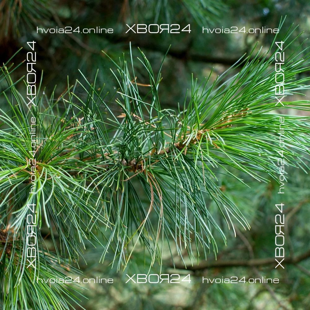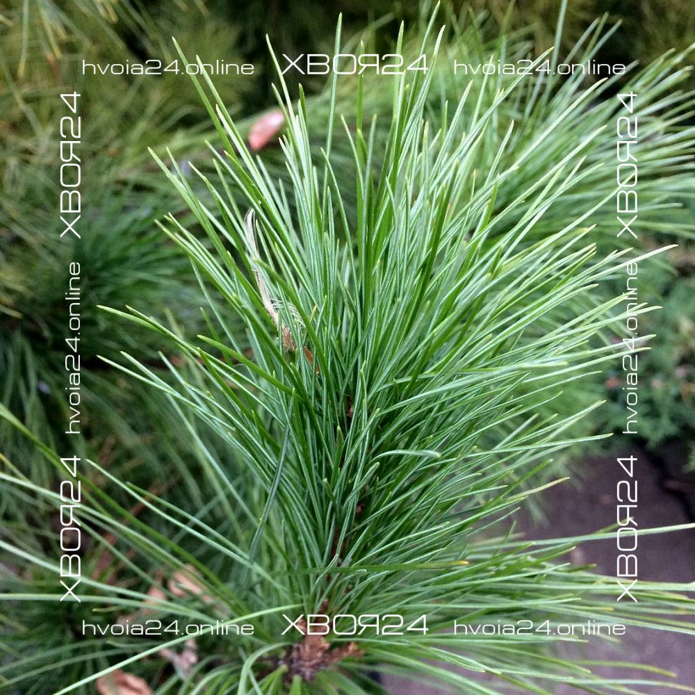 Мягкая, темно-зеленая и покрыта налетом сизого цвета. Длина хвоинок может достигать 15 сантиметров, находятся они в пучке по пять штук.