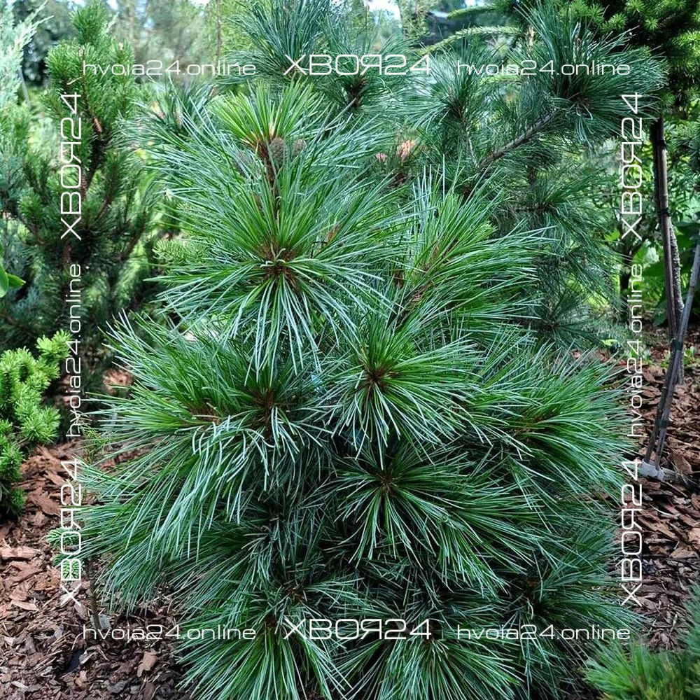Посадочная яма делается из расчета две высоты и две ширины корневого кома, приобретенного растения. Если почва глинистая, то на глубину ямы необходимо поместить 10-20 см дренажа, например: гравий, керамзит, битый кирпич, щебень. Яму желательно наполнить специальным грунтом для хвойных растений или почвосмесью из расчета 1:2:2 (одна часть земли, две части торфа и две части песка). При посадке в яму можно добавить корневин или любой другой стимулятор корнеобразования, а так же ОМУ (органическое минеральное удобрение) для хвойных растений. Целостность корневого кома без необходимости не нарушать. Расположить саженец необходимо таким образом, чтобы корневая шейка растения не была заглублена. После посадки саженец хорошо поливают и мульчируют корой, щепой, хвойным опадом или опилками. Если в приготовленную почвосмесь не добавлялось ОМУ для хвойных растений, то под мульчу можно заделать в грунт любое минеральное удобрение для хвойный растений. Все карликовые сорта удобряются из расчета 30% от нормы указанной производителем. Сосны привитые на штамб необходимо закрепить на опору чтобы помочь растению противостоять снеговым и ветровым нагрузкам.