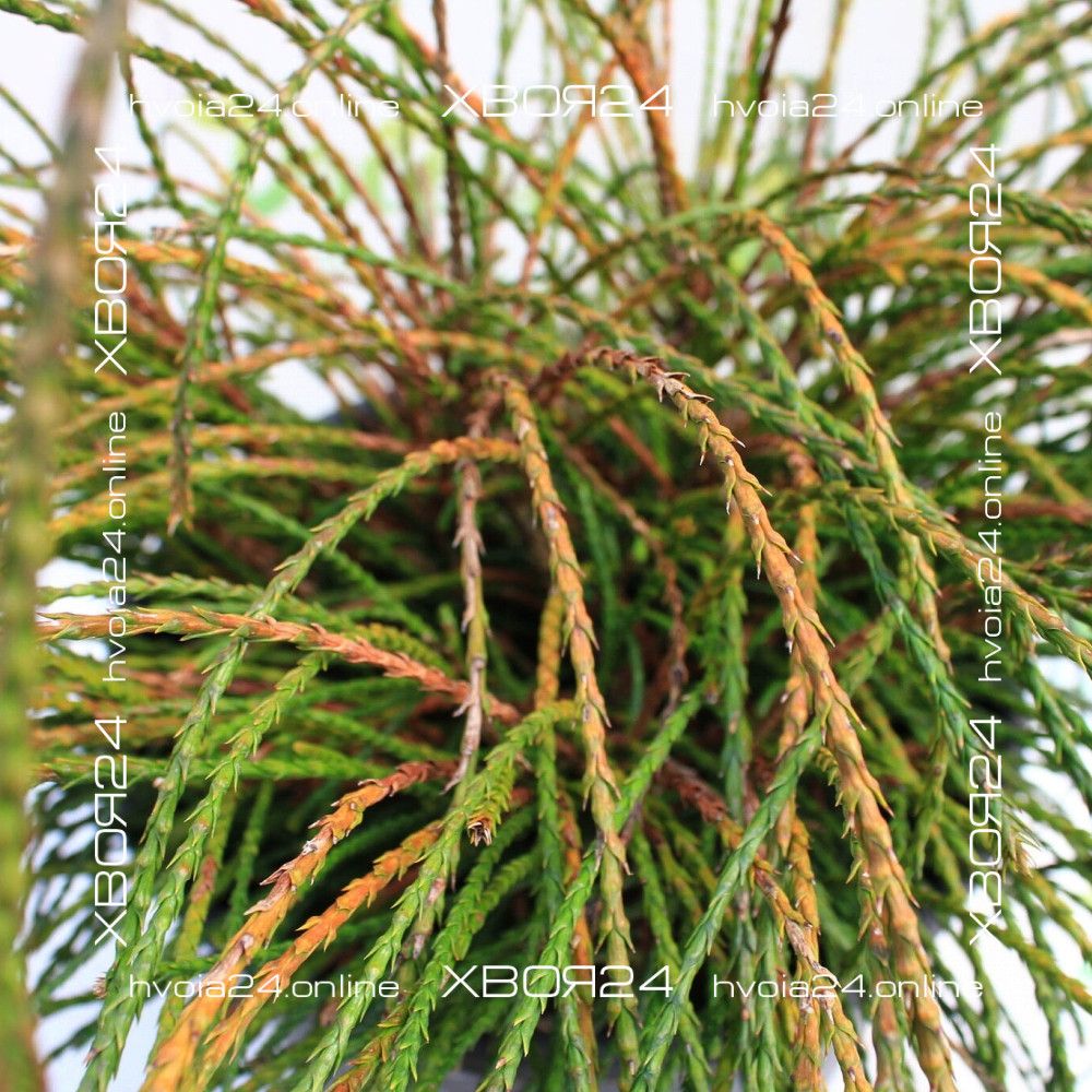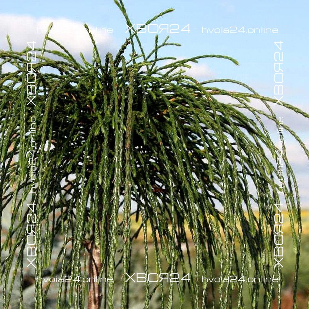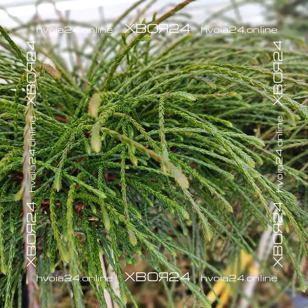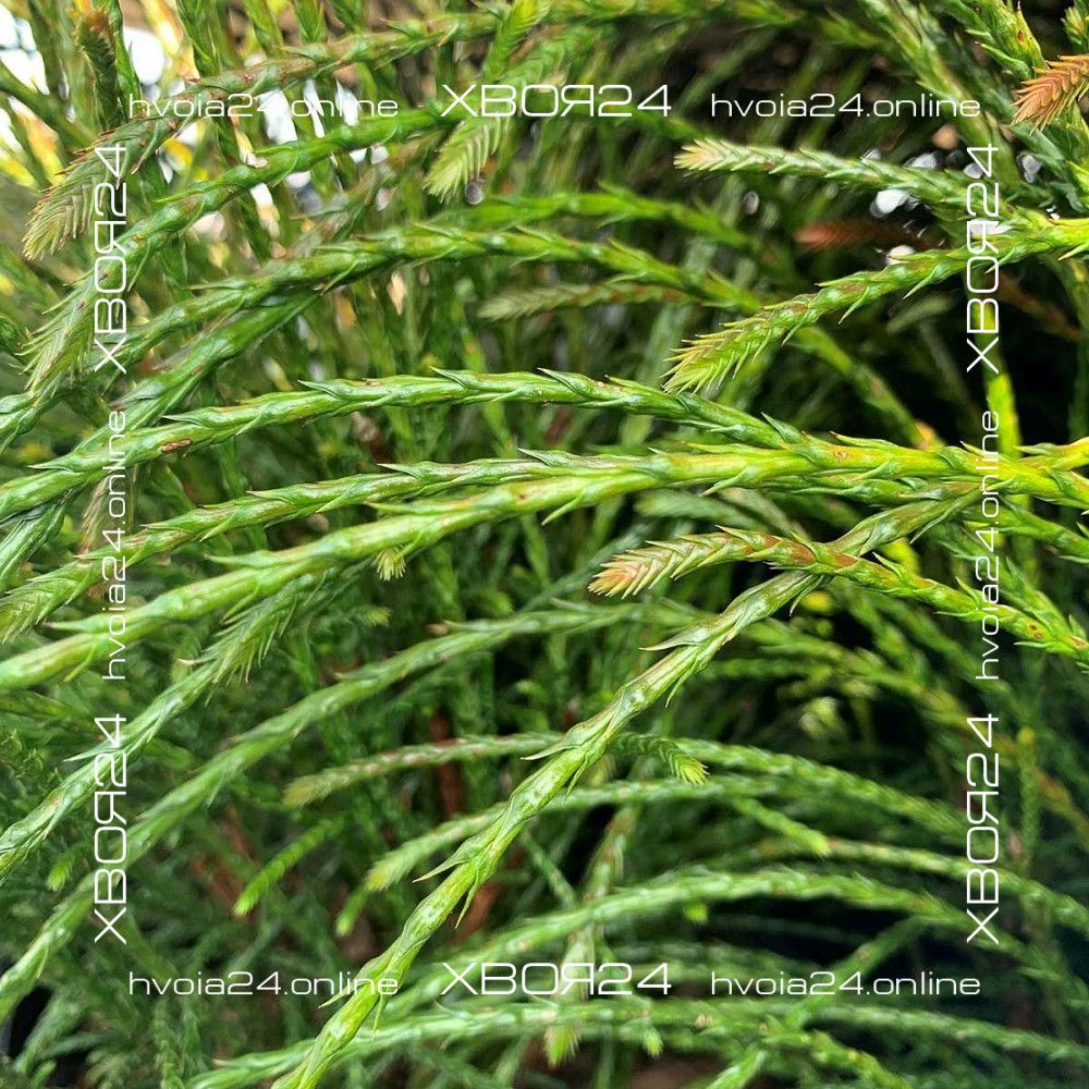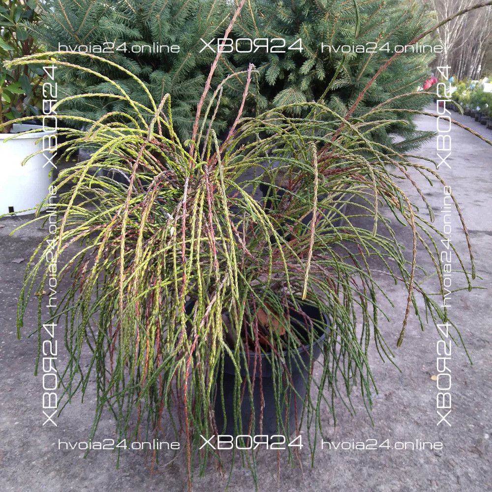 Если поближе рассмотреть каждый побег, можно заметить хвойные чешуйки, которые, как бы наслаиваясь друг на друга, создают определенный объем «нитей» и придают им схожесть с шероховатой бечевой.