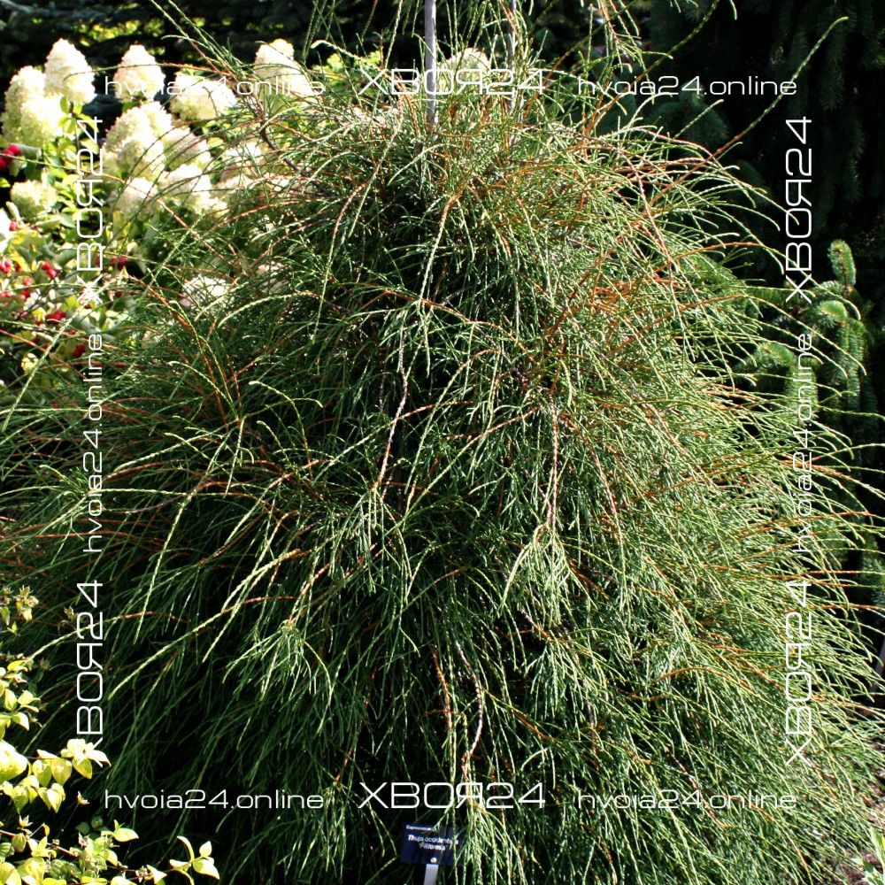 Одной из самых интересных разновидностей туи западной считается туя Филиформис (Filiformis) — оригинальная и не похожая на своих сородичей. Своё название туя западная Филиформис (лат. Thuja occidentalis Filiformis), или Нитевидная получила за необычный внешний вид. Длинными поникающими нитевидными побегами дерево напоминает плакучую иву. А ярко-зелёный цвет хвои делает её очень декоративной.