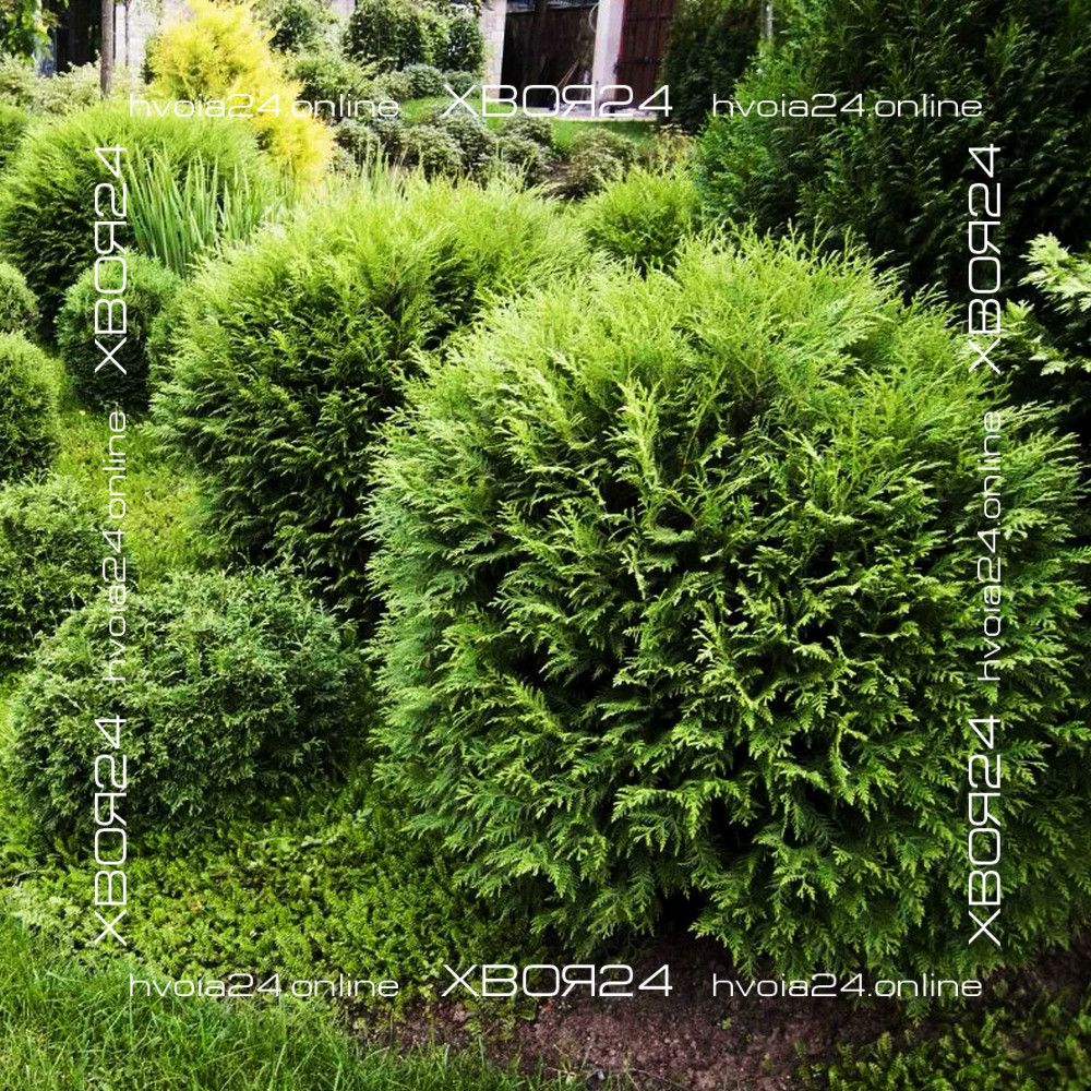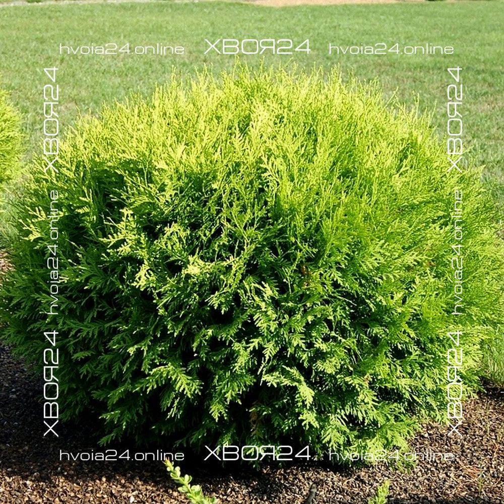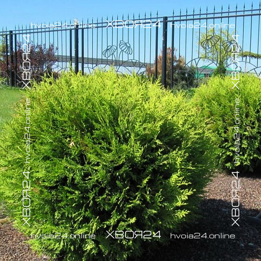 Туя западная Глобоза (Globosa) – первая и самая крупная из округлых форм, напоминающая огромный лохматый шар. Она была получена в 1874 году и впервые описана Р. Смитом. Вечнозеленый кустарник крупный и способен вырастать до 2х2 м. Растет сравнительно медленно 15-20 см в год (в 10 лет всего около 1 м). В молодом возрасте больше напоминает овальную колонку, но по мере развития постепенно расширяется, становясь все более округлой. Крона значительно плотнее родительского растения и имеет близко посаженные веточки, но, все же, она требует раз в 2 года формирующей стрижки для придания большей аккуратности. Хвоя мягкая равномерного зеленого цвета. В зимний период хвоинки буреют или становятся сероватыми. Поэтому не бойтесь этого, с вашей туей ничего не случилось!