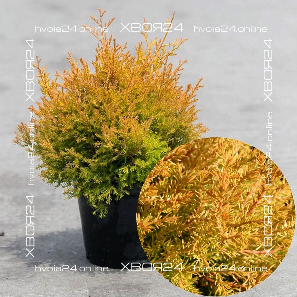 Туя западная Клот оф Голд (Cloth of Gold) – компактная туя сферической формы. Хвоя с золотисто-жёлтым оттенком, который зимой становится оранжево-коричневым.