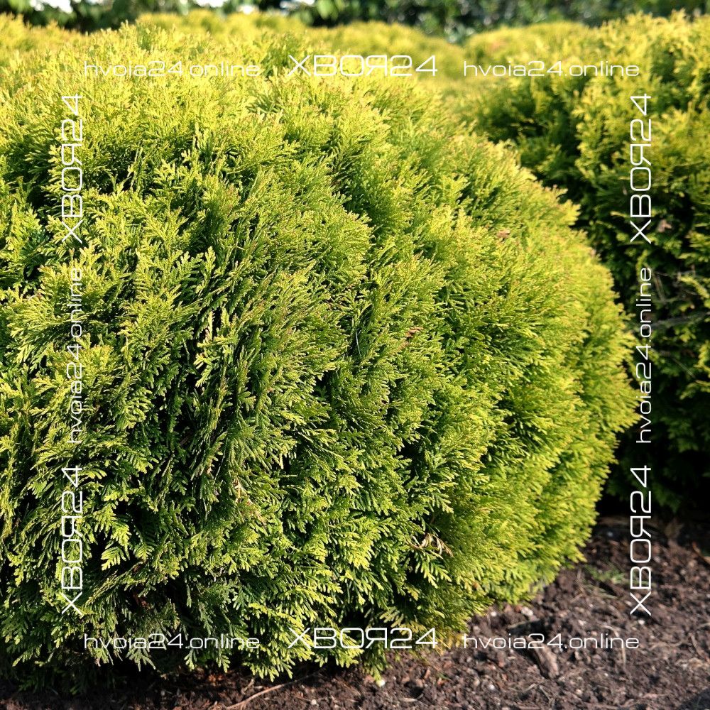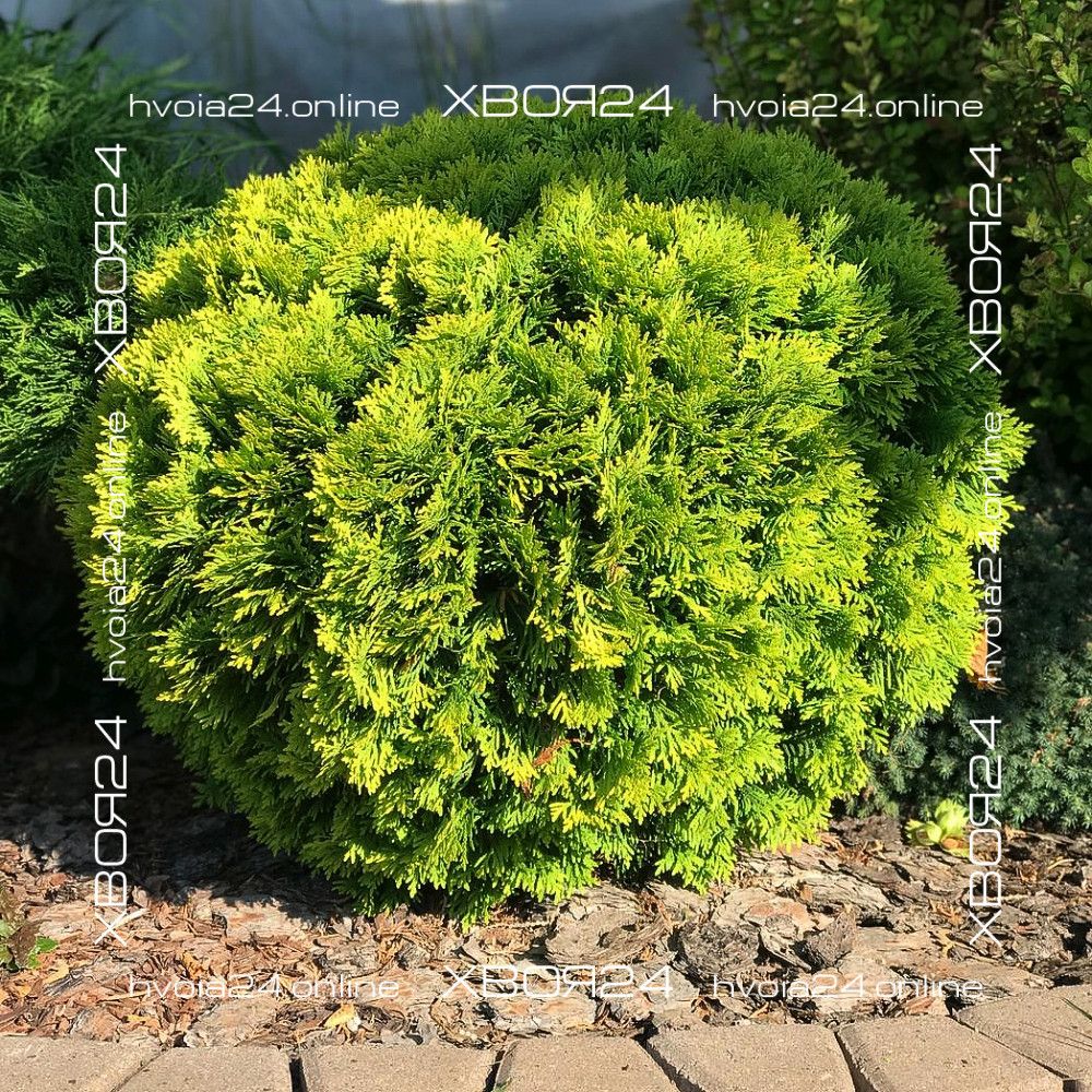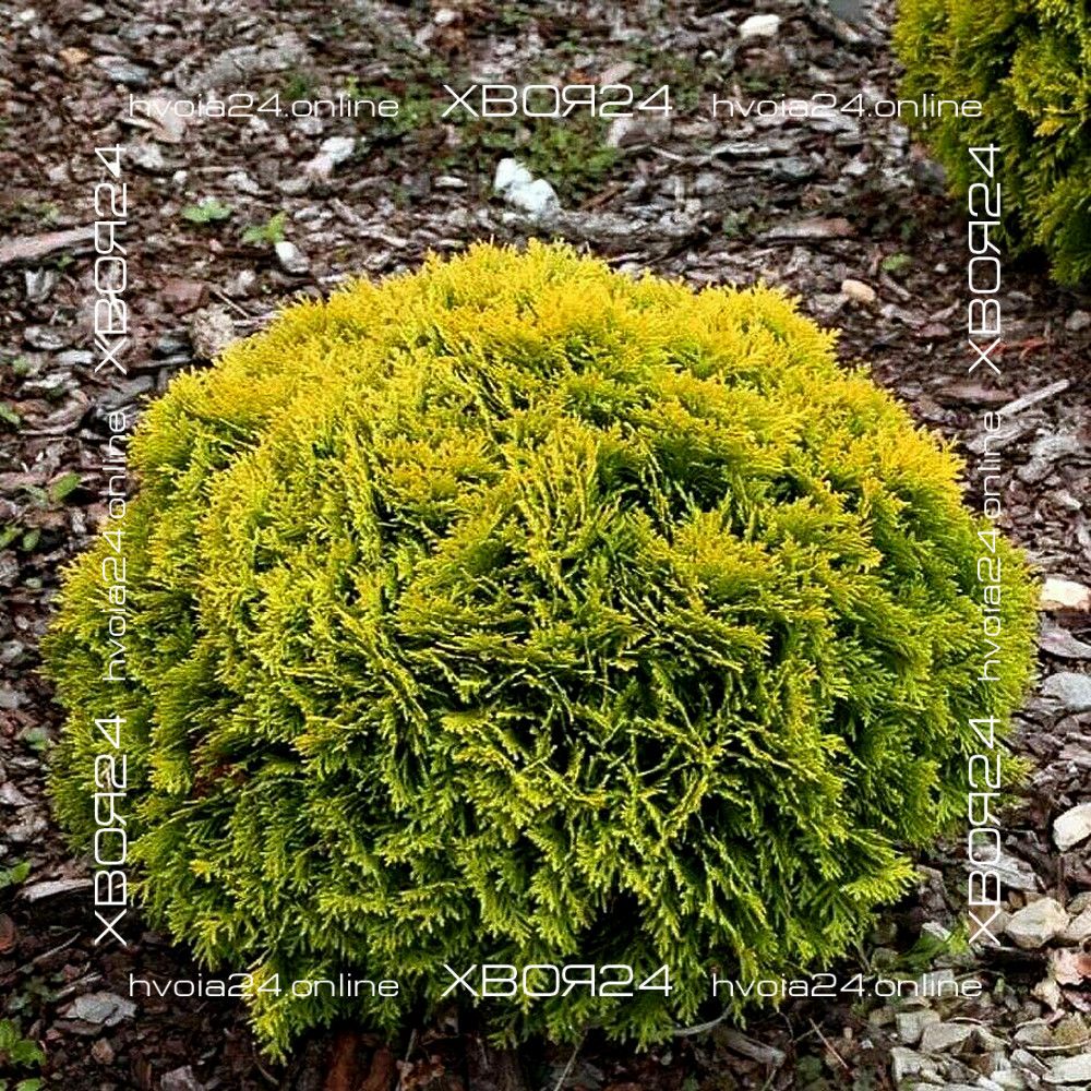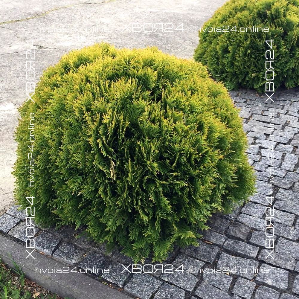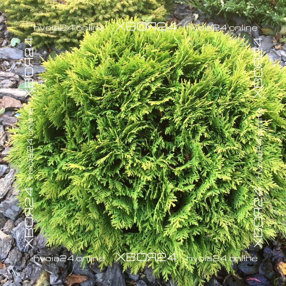 Форма кроны: шаровидная. Медленнорастущая туя. Годовой прирост: 3-8 см. Размер в 10 лет: около 60 сантиметров в диаметре.