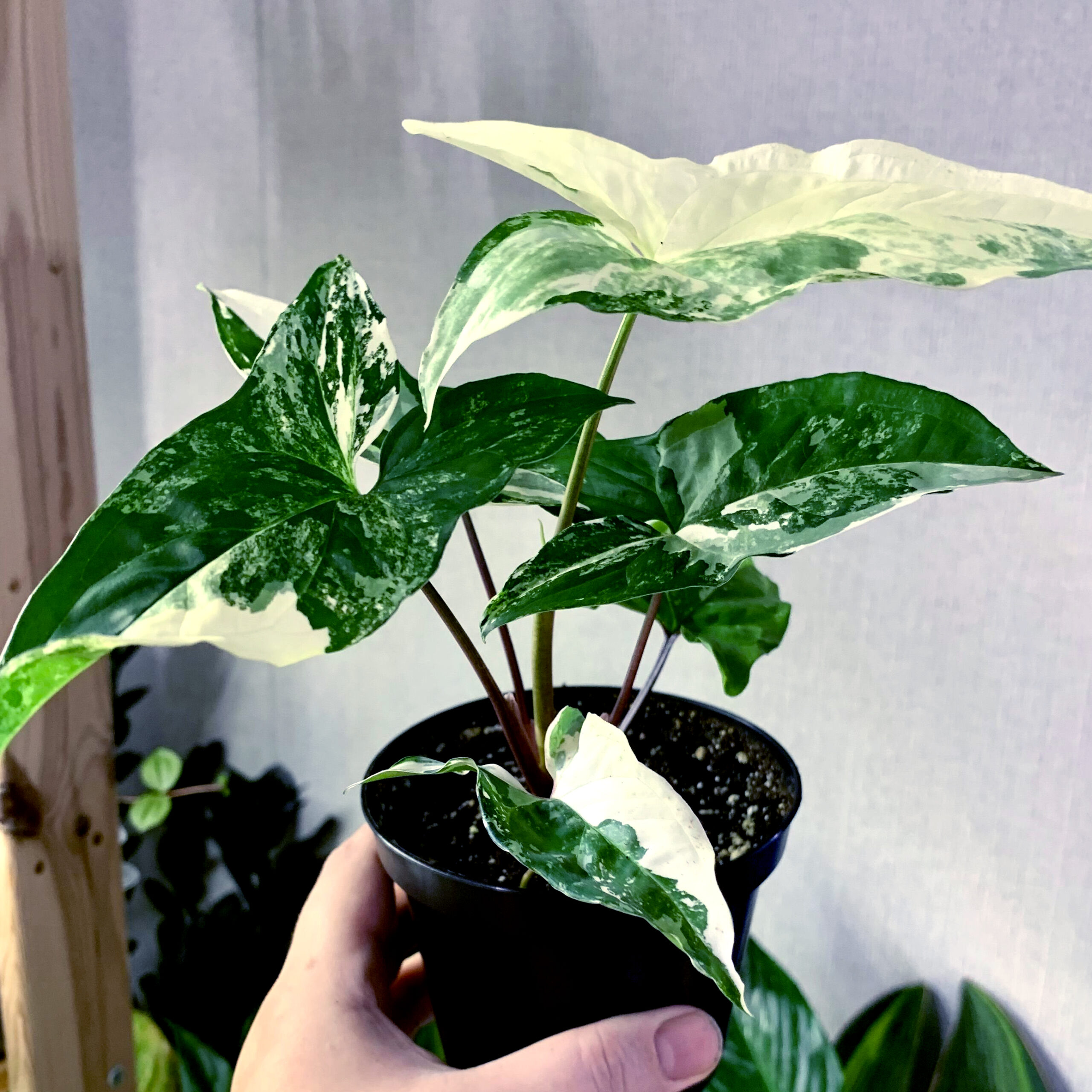 Сингониум Imperial White (Империал Вайт) — изысканное декоративно-лиственное растение из семейства Araceae с уникальной белоснежной окраской листьев. Этот эффектный сорт отличается крупными стреловидными листьями с выразительными белыми участками и тонкими зелеными прожилками.