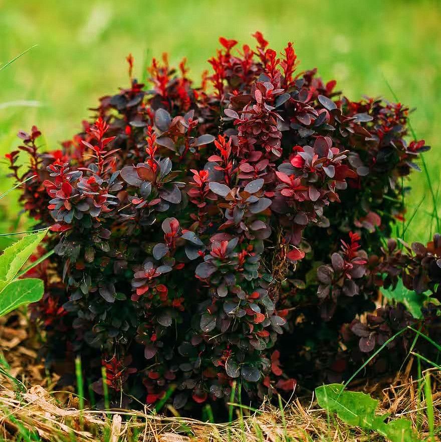 Описание барбариса Тунберга «Багатель» можно начать с того, что это один из широко востребованных сортов. Растение сравнительно компактно. Ширина и высота кустов не превышает 0,4 м. Стрижка позволяет выработать форму шара, которая отлично подходит для барбарисов. Молодые побеги окрашены в красные и коричневые тона, но с наступлением осени они приобретают насыщенный коричневый отлив.