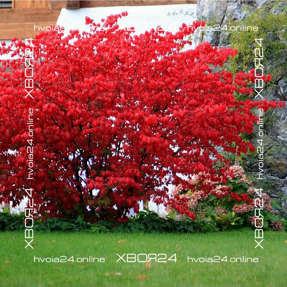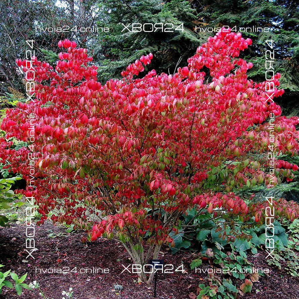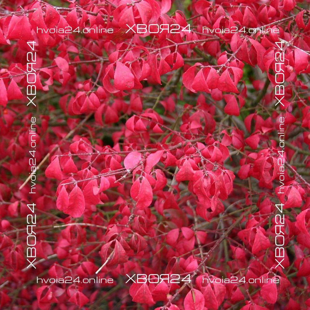 Плодоношение начинается в конце лета. К сентябрю коробочки окрашиваются в розово-красный или тёмно-красный цвет, а при полном созревании раскрываются, демонстрируя ярко-оранжевые семена. Плоды держатся на ветвях долго, иногда до зимы. На фоне яркой осенней листвы они выглядят особенно эффектно, придавая кустарнику насыщенные декоративные акценты.