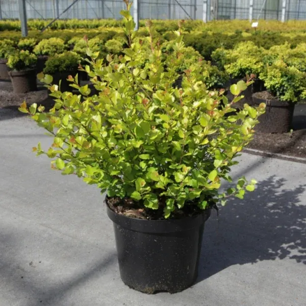Взрослое растение достигает высоты 60–80 см и диаметра 1–1,5 м. Растет медленно, около 10 см в год. Листья мелкие, округлые, с зазубренными краями. Весной они ярко-желто-зеленые, а летом приобретают золотистый оттенок.
