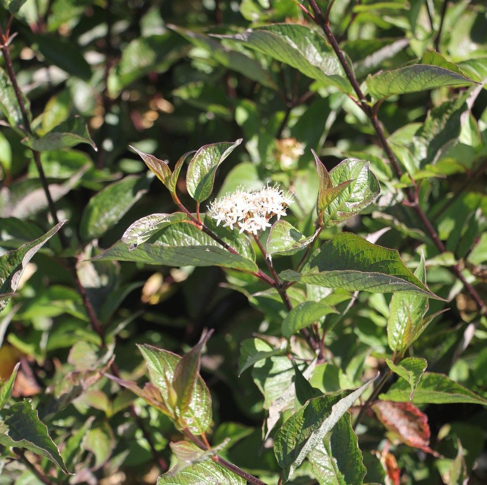 Это среднерослый сорт высотой в 2 м и с такой же шириной. Он растет быстро, у него раскидистая крона округлой формы и прутьевидные побеги. Цвет побегов – черно-коричневый. Листья имеют шесть пар жилок, они овальные, с морщинистой поверхностью. Размер листовой пластины – до 12 см. Весной листочки дерена темно-коричневые, а летом – коричнево-зеленые. Каймы нет.