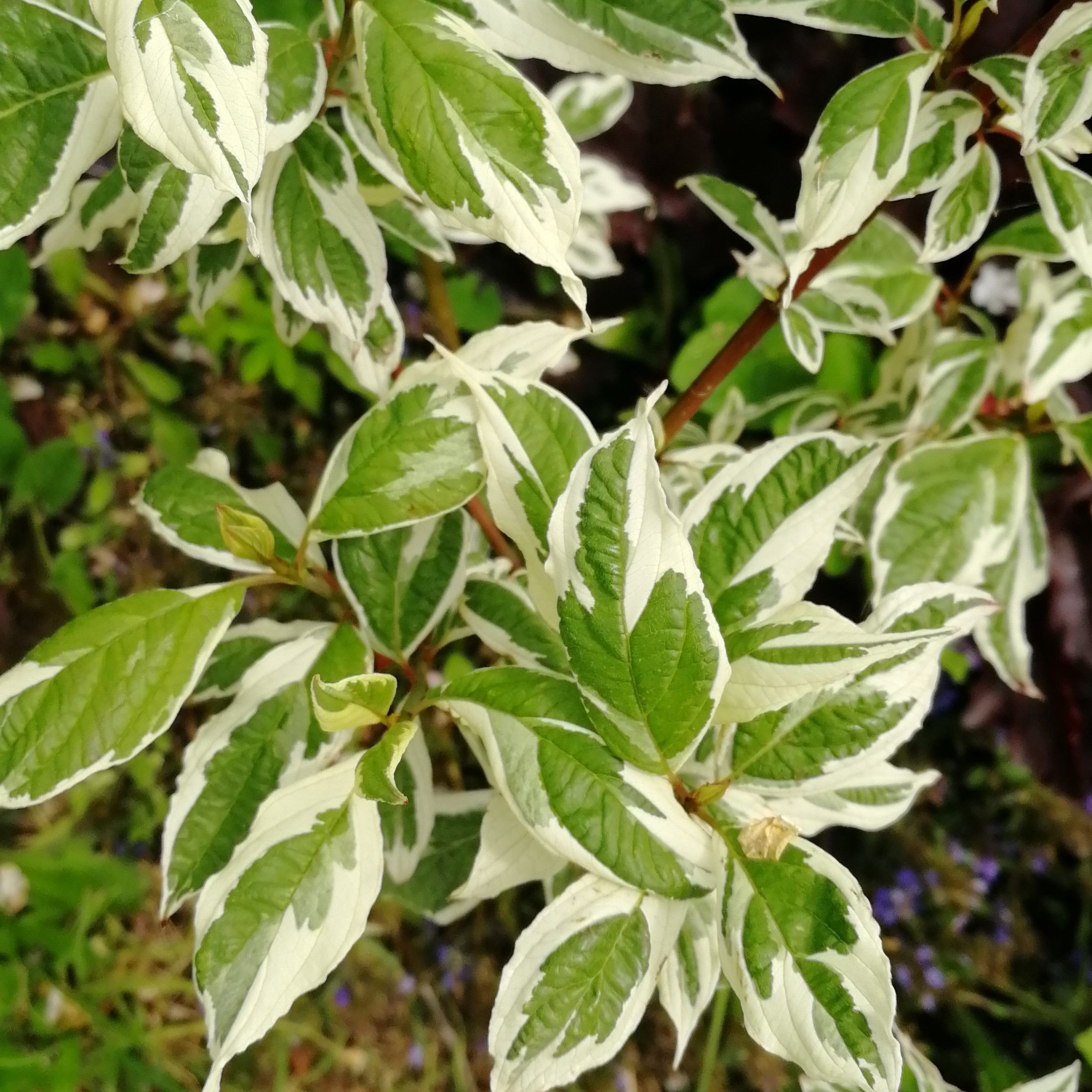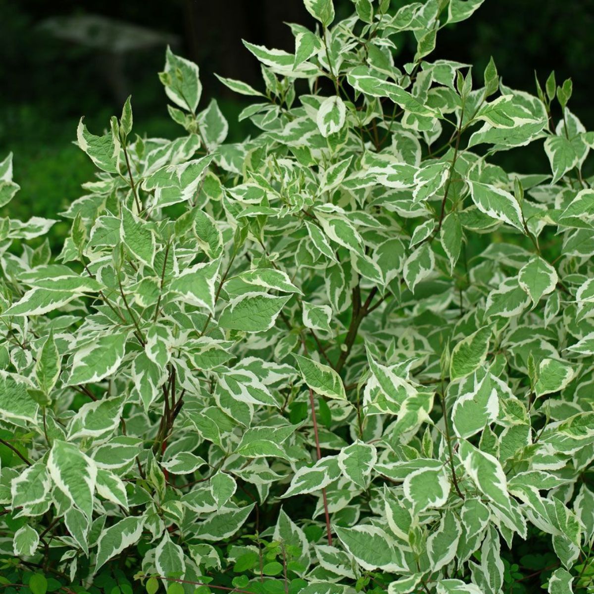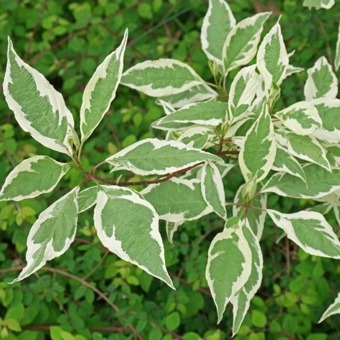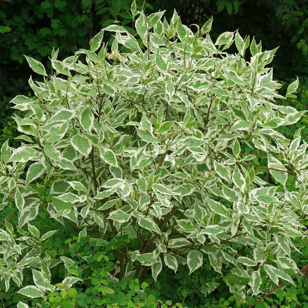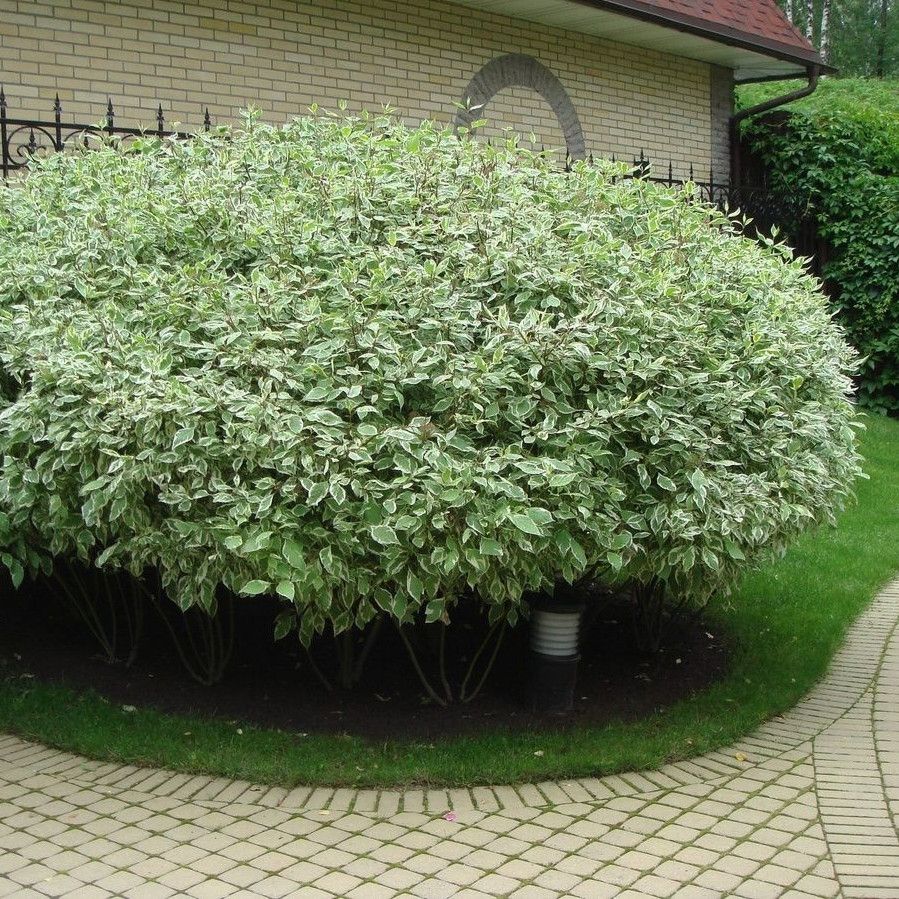 Дерен белый Элегантиссима (Elegantissima). Продолжительность жизни растения – более 25 лет. Разновидность – белый. Высокорослые кусты достигают 3 метров в высоту. Ширина кроны варьируется от 3 до 5 метров. После посадки растение быстро развивается, активно разрастаясь. Крона имеет раскидистую куполообразную форму. Она способна разрастаться в целые «острова».