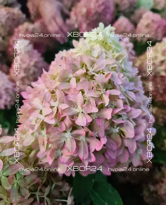 Цветы этой гортензии меняют цвет от бело-лаймово-зелёного до зелёного и нежно-розового. Некоторые садоводы сравнивают лепестки с пропеллерами. В разгар цветения в центре каждого розового цветка появляются маленькие белые пестики.