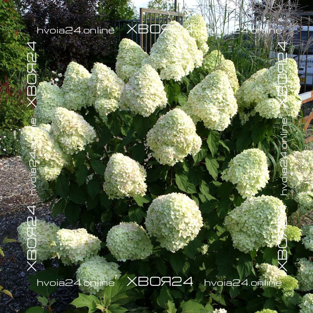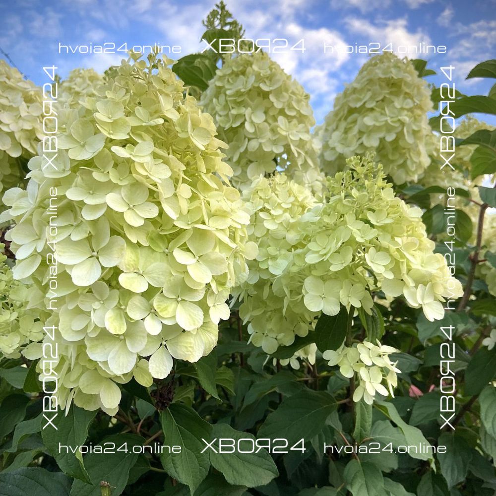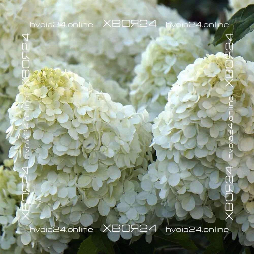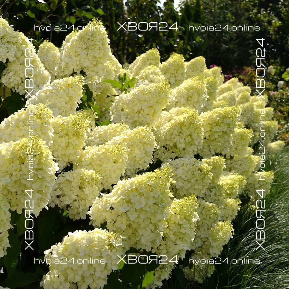 Цветки крупные, сначала лаймового цвета, затем быстро белеют и остаются такими до конца цветения, к которому слегка розовеют. Соцветия конусовидные, большие и плотные, равномерно распределены по кусту. Вершина конуса рыхлая в середине цветения, светло-желтая. Цветение продолжается с июля до заморозков. Большие соцветия формируются к 3-4 годам, если весной удалять тонкие и слабые побеги.