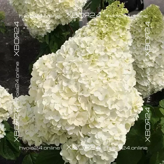 Соцветия имеют форму симметричной пирамиды с широким основанием, крупные, белые, с зеленым конусом на вершине. К осени могут приобретать сиреневато-розовый оттенок. В начале цветения они легкие и воздушные, но по мере распускания становятся плотными. Цветки четырехлопастные, округлой формы. Цветение длится с июля по сентябрь.