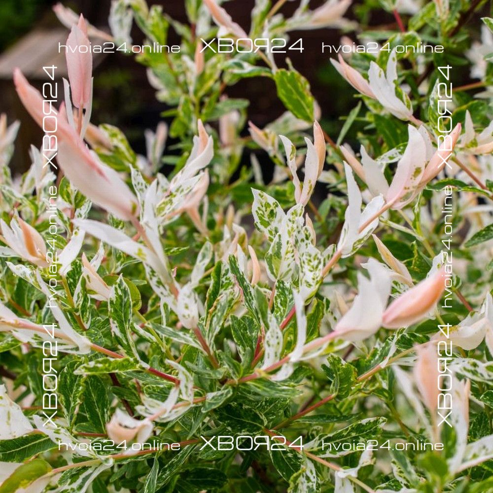 Листья ивы имеют пятнистый окрас нежных оттенков. На них можно увидеть бежево-зеленые, салатовые и розоватые тона, которые меняются в зависимости от сезона. С понижением температуры листья становятся более насыщенными, а контрастность уменьшается. Эта особенность делает растение привлекательным для использования в ландшафтном дизайне, где оно часто используется для украшения участков.