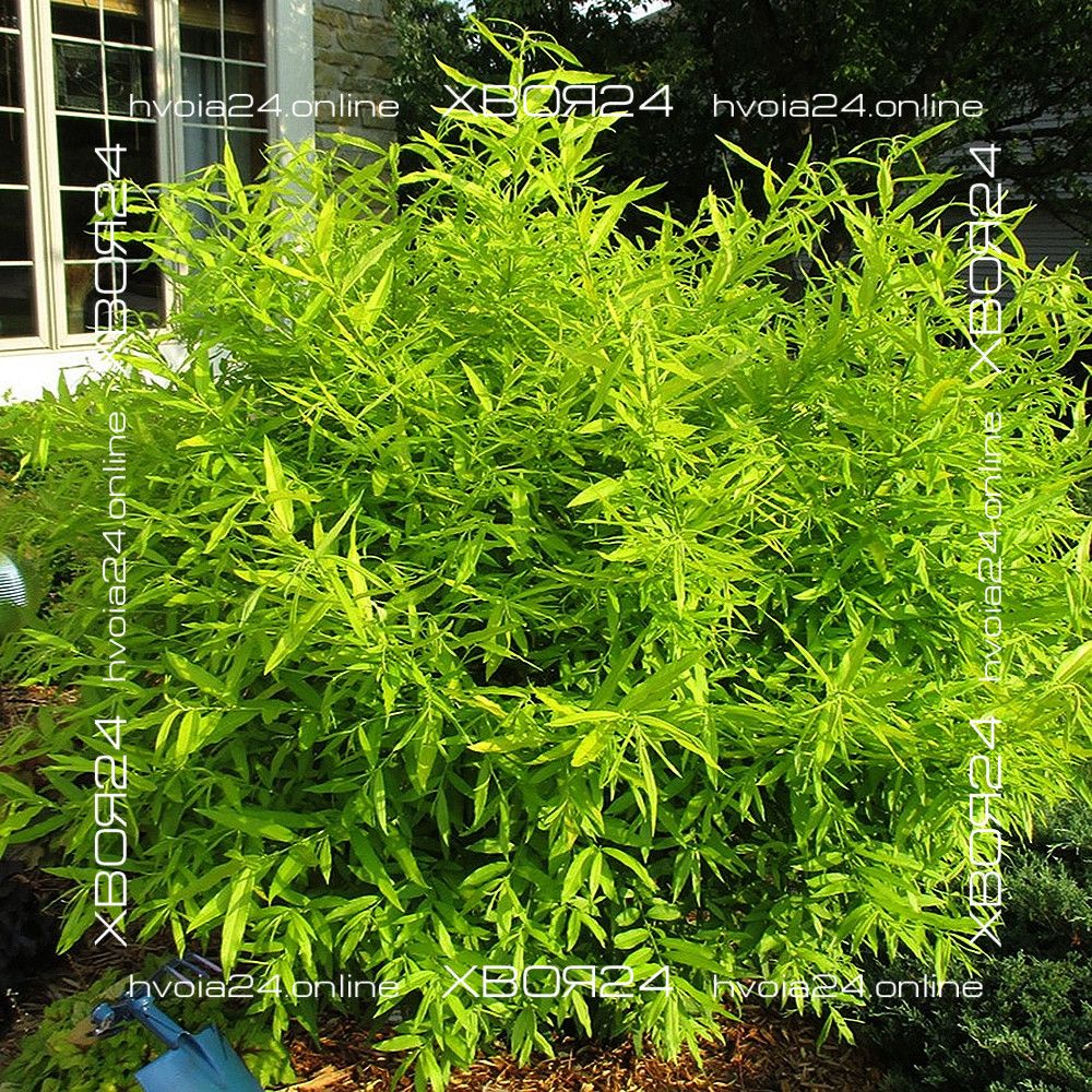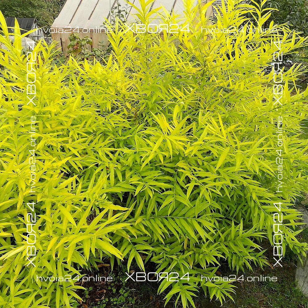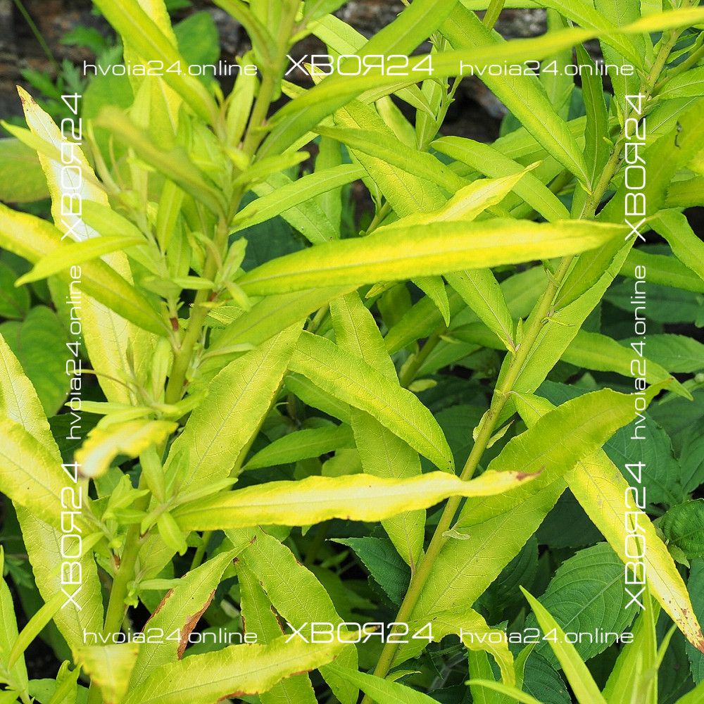 Ива сахалинская Голден Саншайн (Golden Sunshine) или золотое солнце — это раскидистое дерево или куст, относящийся к древовидным растениям с низкорослым типом роста. Обычно его высота достигает 2-2,5 метров, а диаметр — 2,5-3 метров. Крона ивы аккуратная и шаровидная. Побеги гибкие, тонкие и изящные. Листья узкие, ланцетные, с разнообразными оттенками зелени — от жёлто-зелёного до золотистого и лаймово-зелёного. Длина листьев составляет около 7-10 сантиметров. Ива Голден Саншайн пестролистная. Серёжки удлинённые, размером 3-5 сантиметров, жёлто-зелёного цвета.