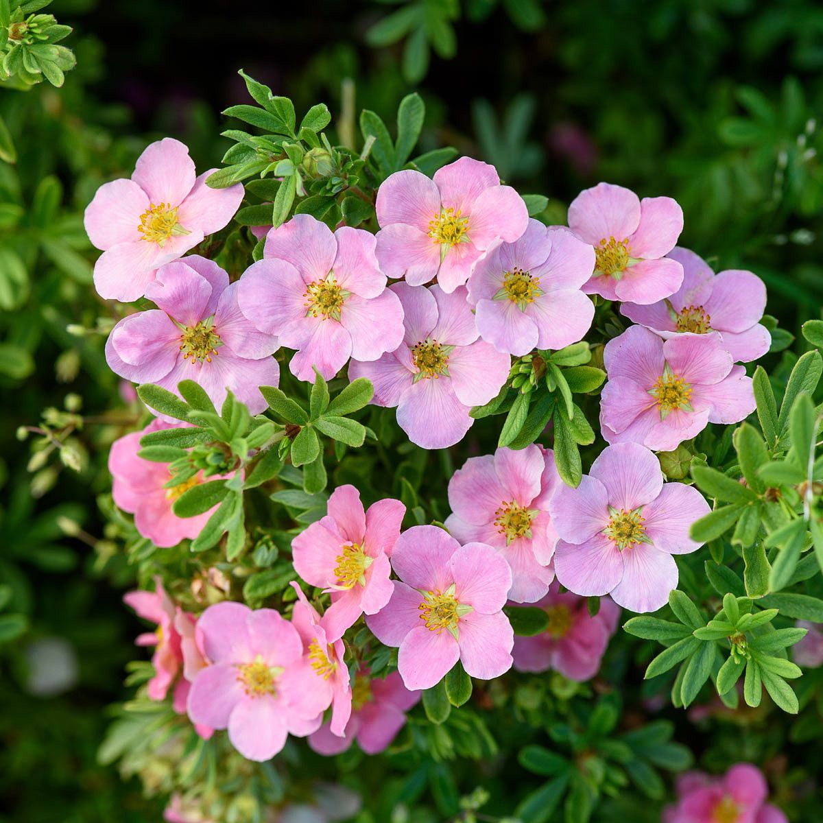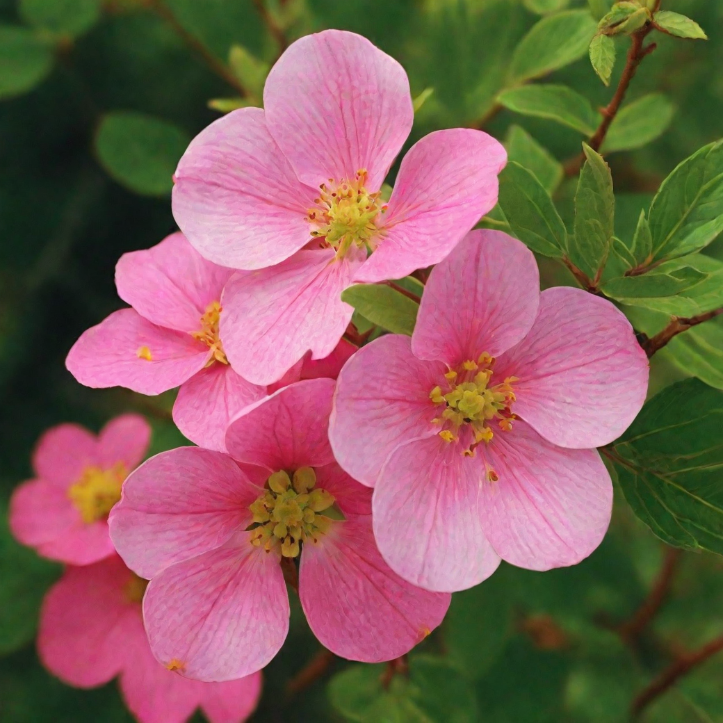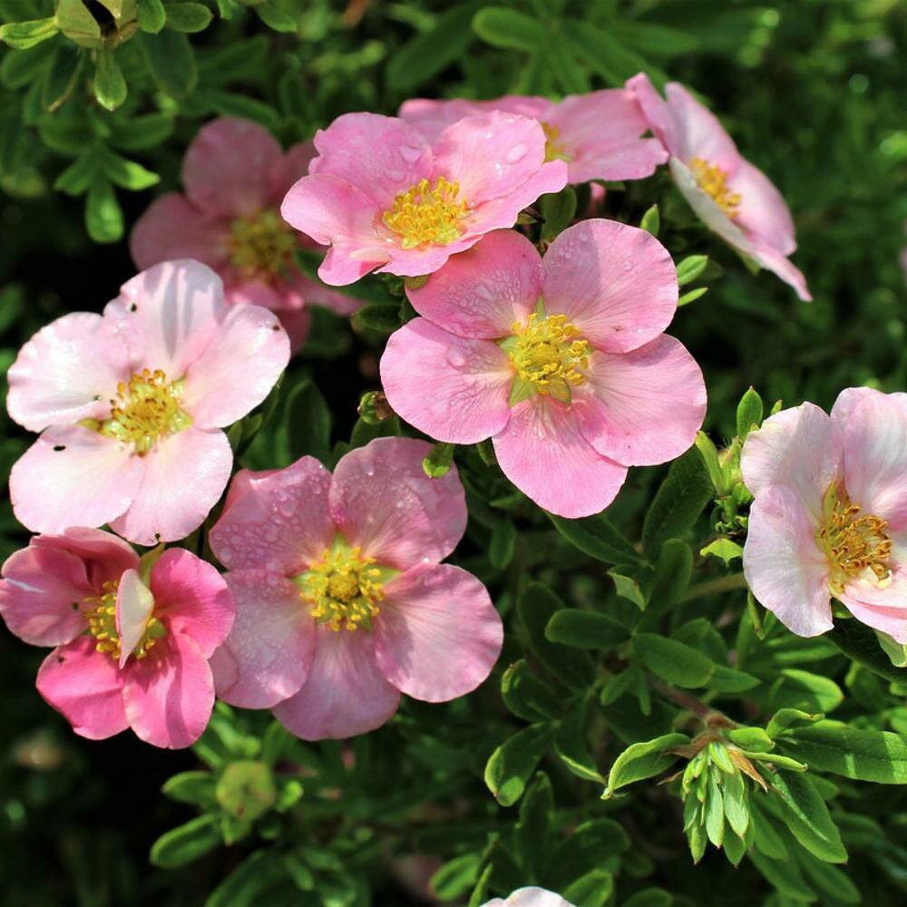 Лапчатка кустарниковая Пинк Квин (Pink Queen) — это невысокий, компактный кустарник, который может достигать высоты до 80 см. Ширина куста может составлять до 120 см. Растение отличается быстрым ростом: средний годовой прирост составляет около 20 см.