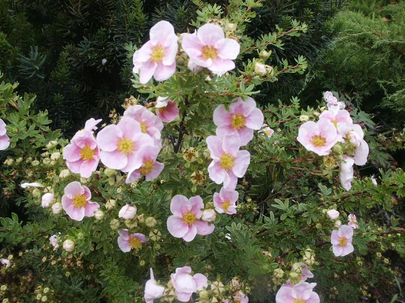 Кустарник лапчатка Пинк Квин часто используется в рокариях, в кустарниковых миксбордерах и на бордюрах. Также его применяют для оформления альпийских горок и садов в азиатском стиле. Лапчатка прекрасно сочетается с травянистыми растениями, хвойными породами и цветами, такими как ромашки, лилейники и колокольчики.