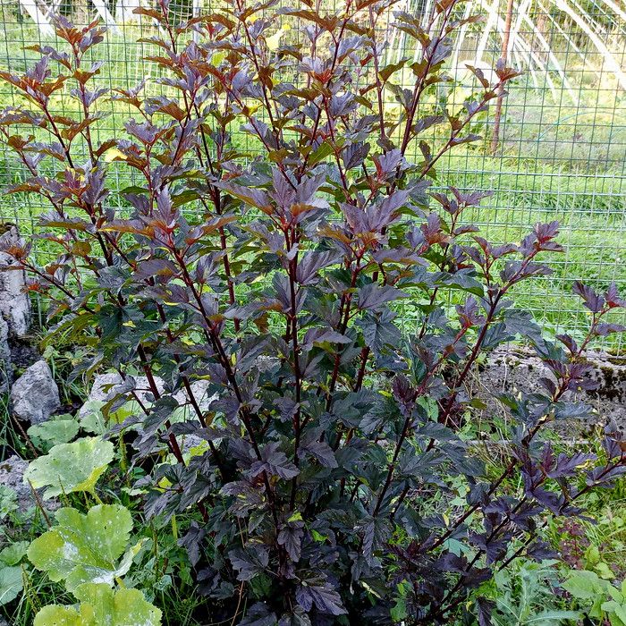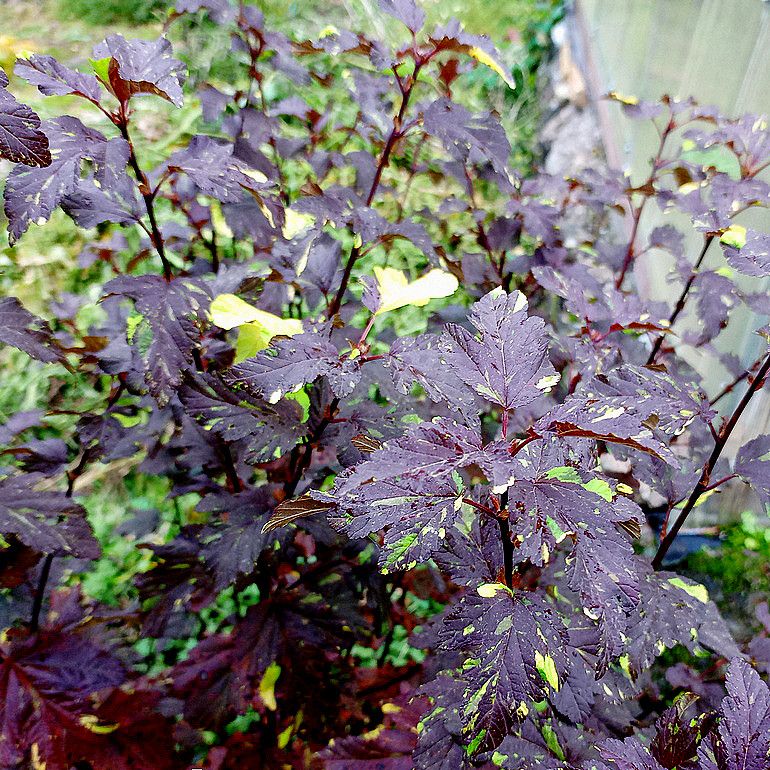Пузыреплодник калинолистный Саламандра – декоративный листопадный кустарник вырастающий до 2,5-3 м в высоту и ширину. Листья бордовые, с золотисто-желтыми и зелеными пятнами. Лучше всего изменение цвета заметно на молодых приростах, поэтому рекомендуется сильная обрезка этого сорта. Цветы этого пузыреплодника кремово-белые, собраны в полусферические соцветия. Цветение Мефисто начинается в конце июня и продолжается в июле. Длительность цветения около 4 недель. Пузыреплодник калинолистный Саламандра – растение, подходящее для любого сада. Отличный сорт для шпалеры и живой изгороди. Из-за устойчивости к загрязнениям воздуха он подходит для городских посадок. Пузыреплодник с огненной оранжево-красной листвой особенно выигрышно смотрится в сочетании с хвойными растениями, оттеняя их сочную зелень. Этот необычный микс сразу же бросается в глаза, поэтому чаще всего становится центром ландшафтной композиции, в окружении других декоративных культур. Саламандра очень декоративно смотрится и при одиночной посадке, превращаясь в центральное украшение сада. Посадку лучше делать на хорошо освещенных участках (допускается легкая полутень) с легкой, рыхлой и плодородной, дренированной почвой. Кустарник нетребователен к условиям выращивания, но не переносит застой влаги в почве. Морозостойкость сорта хорошая, зона 4 (до -34°С).