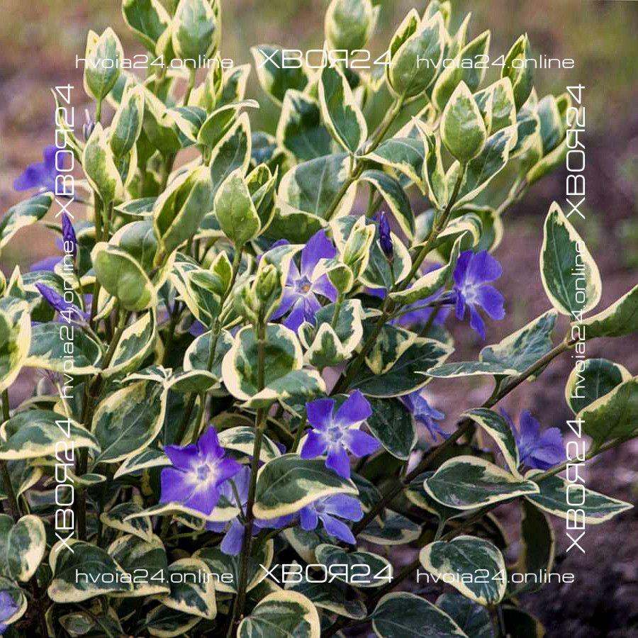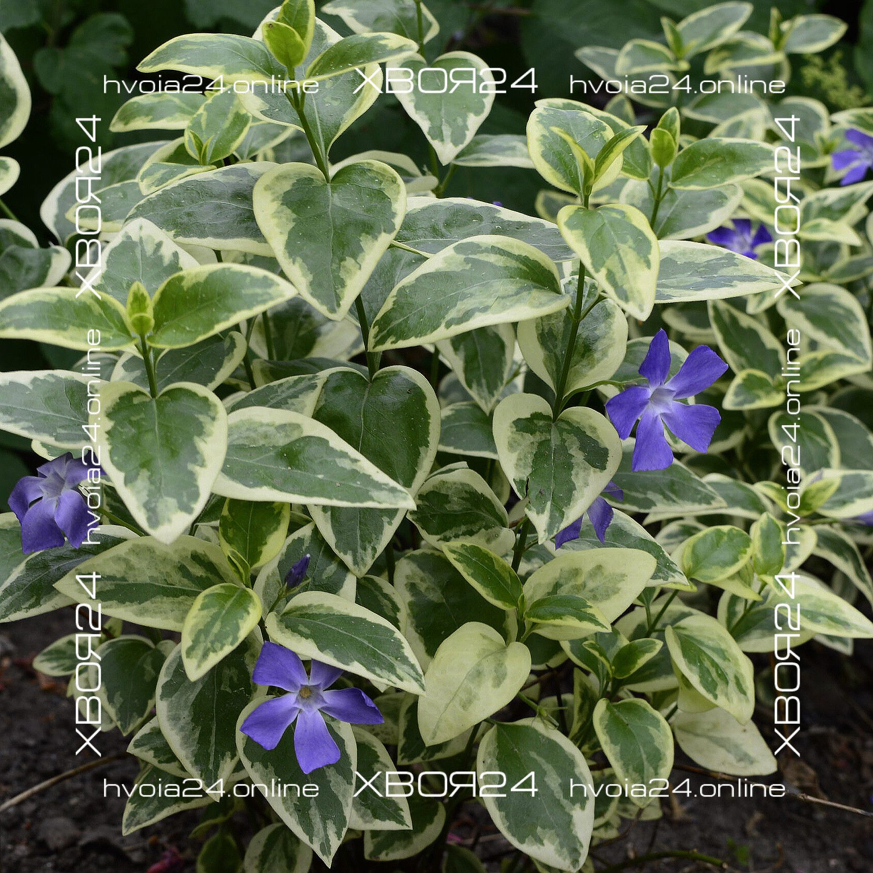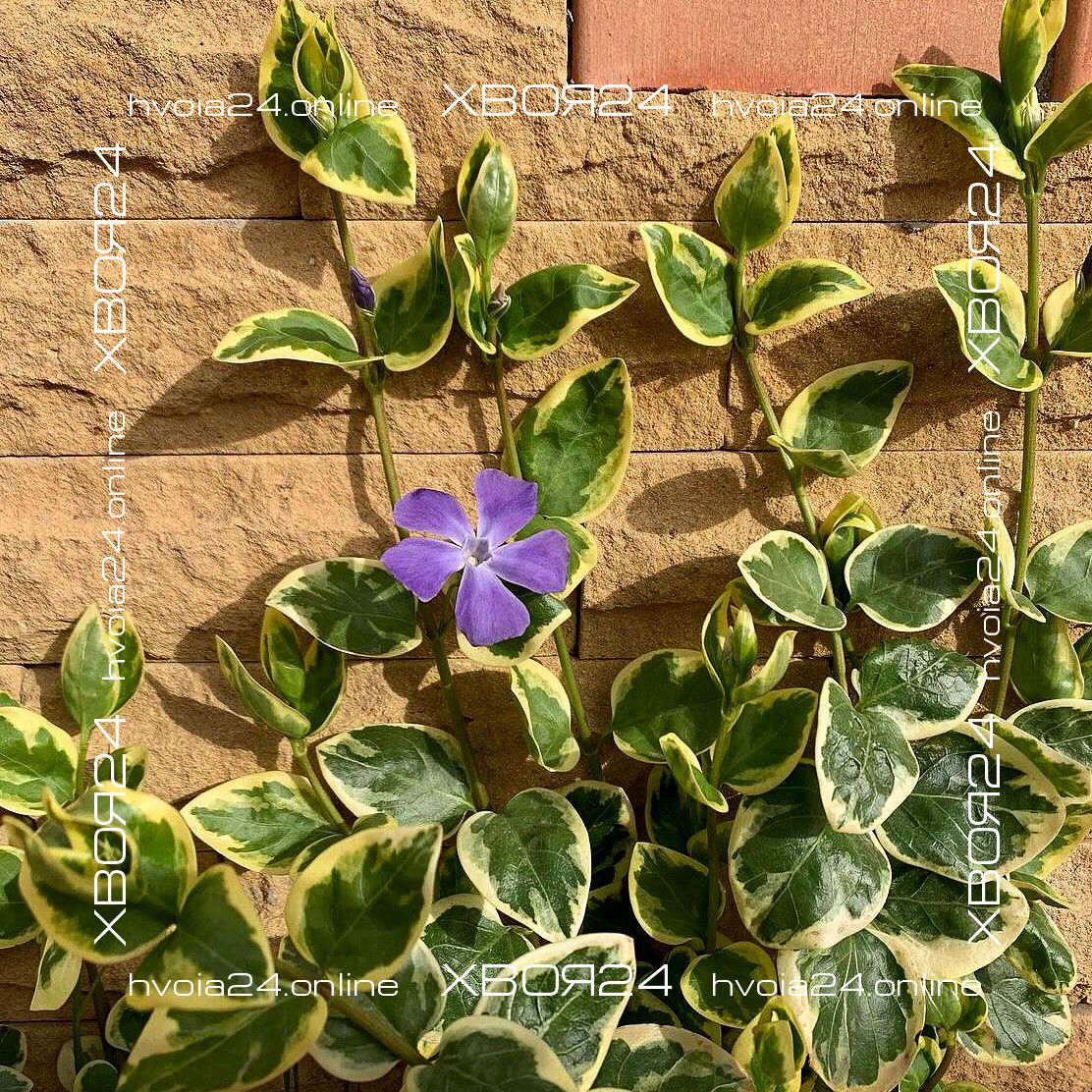 Барвинок большой Вариегата (Vinca major Variegata), представляет собой многолетнее вечнозеленое растение, которое отличается среднерослым типом роста. Высота этого растения достигает 20 см, а диаметр может составлять до 50 см. Побеги барвинка прочные и стелющиеся, что делает его идеальным для создания почвопокровных композиций. Листья у данного сорта крупные, яйцевидной формы, длиной от 30 до 80 мм. Их поверхность глянцевая и окрашена в зеленый цвет с белой каймой по краю, что придает растению особую декоративность.