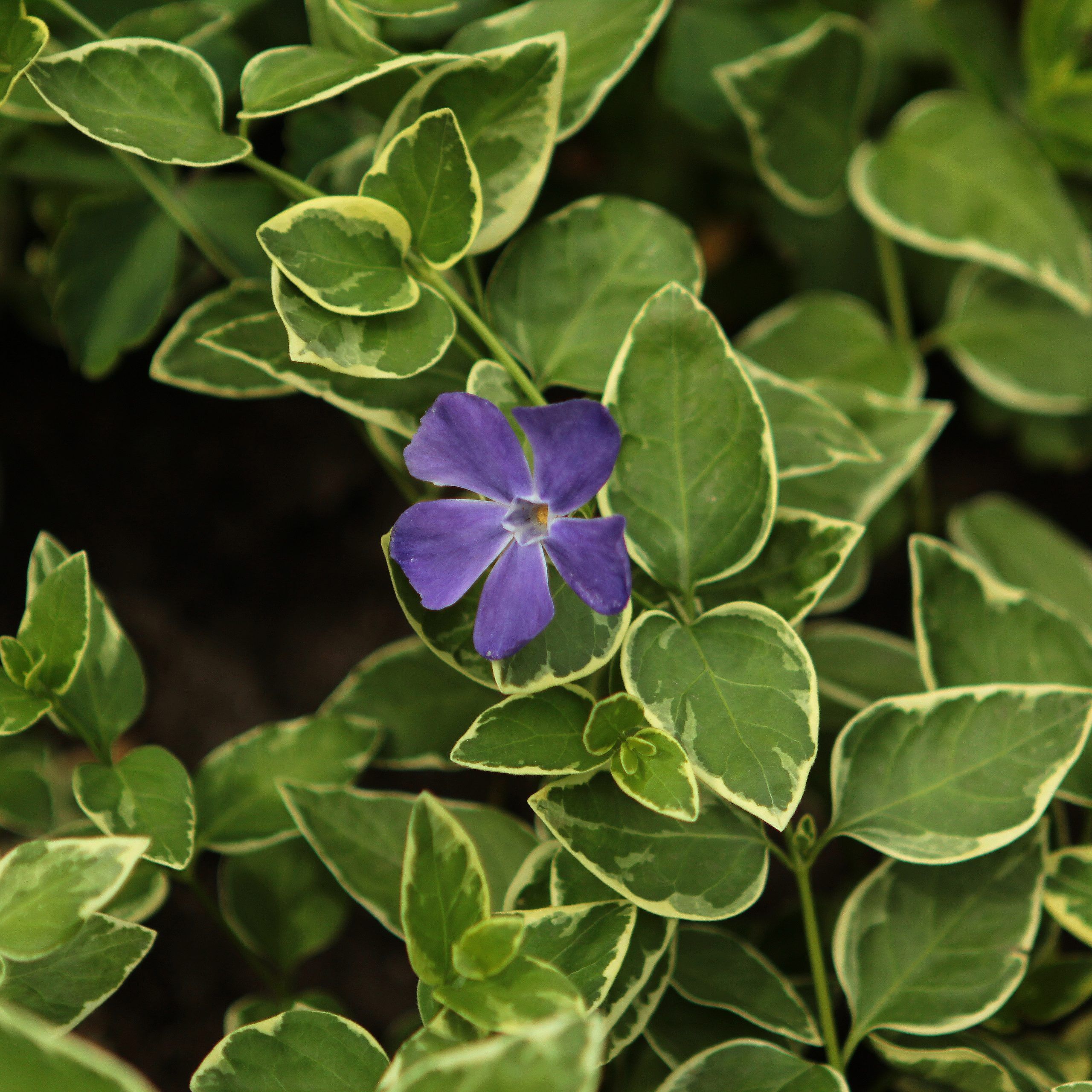 Пестрые листья делают барвинок большой Вариегата привлекательным элементом ландшафтного дизайна. Это растение можно высаживать в тени деревьев и кустарников или использовать в качестве бордюрного растения на передних планах миксбордеров.
