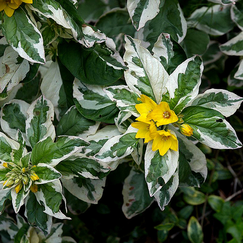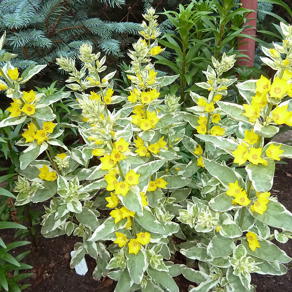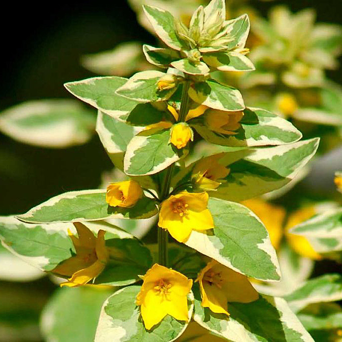 Вербейник (Лизимахия) Александр — это многолетнее растение точечного вида. Он вырастает до 60-80 см в высоту и отличается слабоветвистыми побегами, формирующими плотные кусты с прямостоячими стеблями. Листья растения имеют пеструю окраску: розово-бело-зеленая расцветка придает ему особую декоративность.